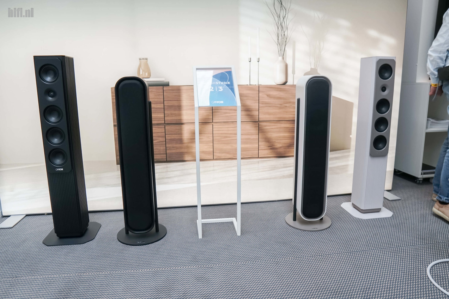 Bij Wharfedale waren alle ogen gericht op de speakers uit de nieuwe Evo 5-reeks. Het is een grotere update dan misschien eerst lijkt, want nagenoeg alle elementen (cross-over, driver en kast) zijn aangepakt, hoorden we van ontwerper Peter Comeau. Je kunt nu ook kiezen voor een grijze finish die visueel opgaat in de omgeving. Daarnaast zijn er drie andere kleuren die wat klassieker zijn, maar ook met hun matte afwerking fraai oogden.