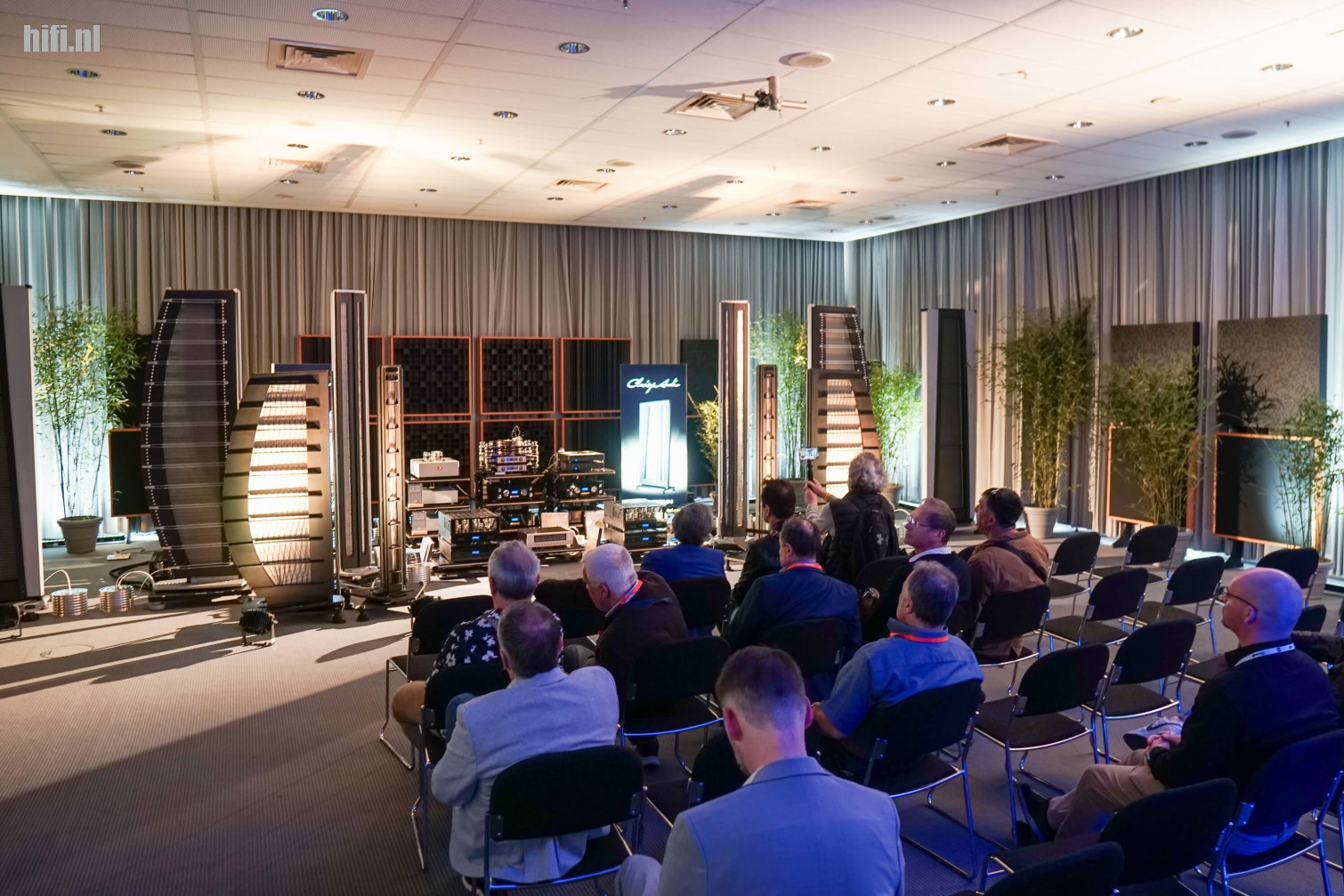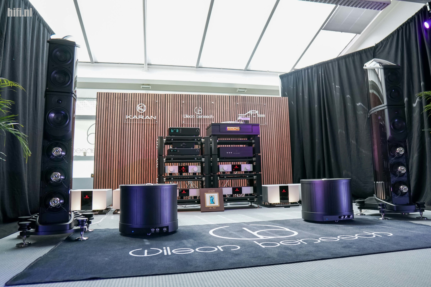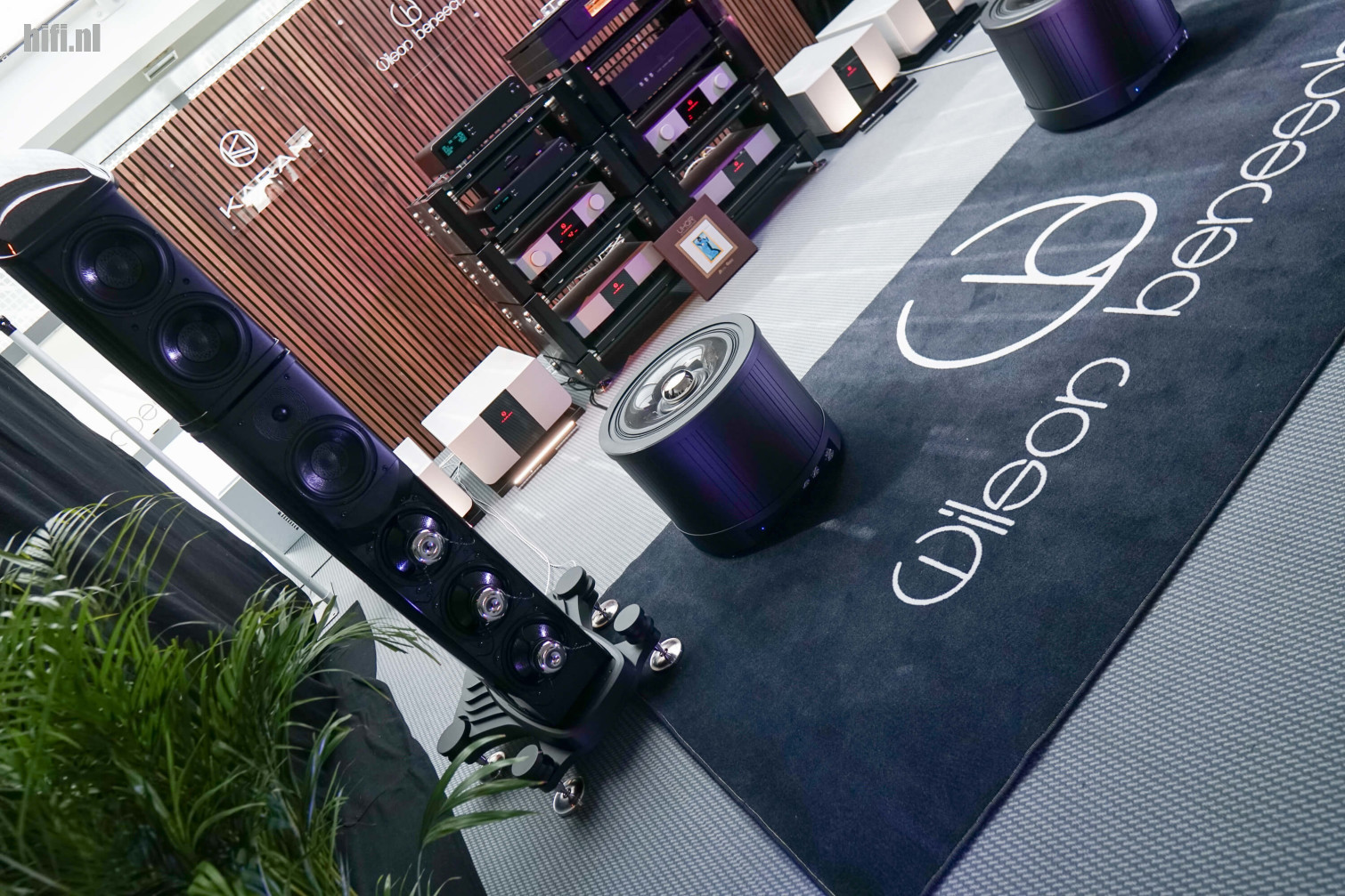 Wilson Benesch stelde ook twee subwoofers op - sorry, IGx Infrasonic Generator. Klinkt als creativiteit van de marketingafdeling, maar deze toestellen met naar boven gerichte woofer zitten toch wat anders in elkaar dan een conventionele sub. Ze waren heel effectief in het ondersteunen van de speakers.