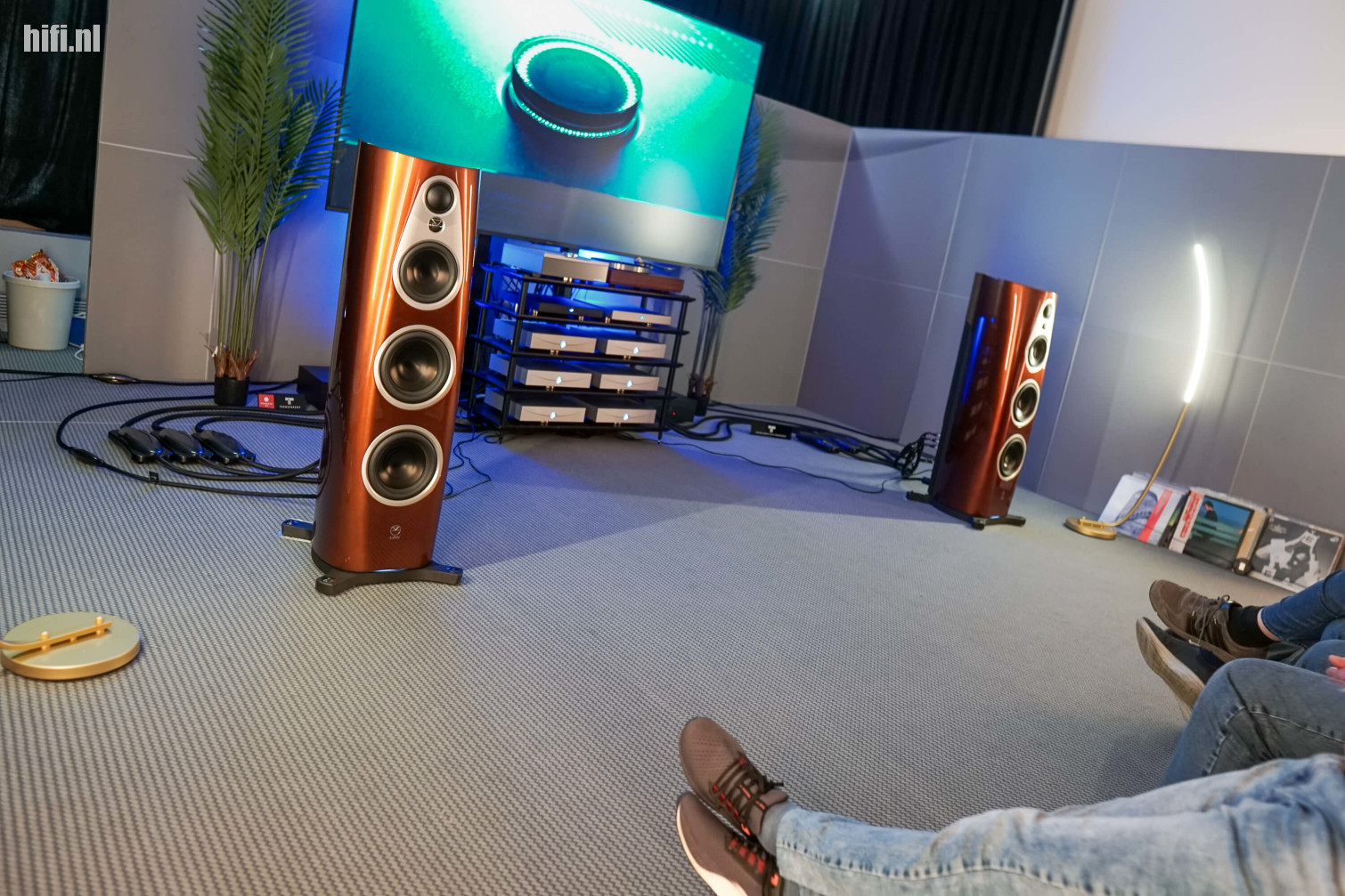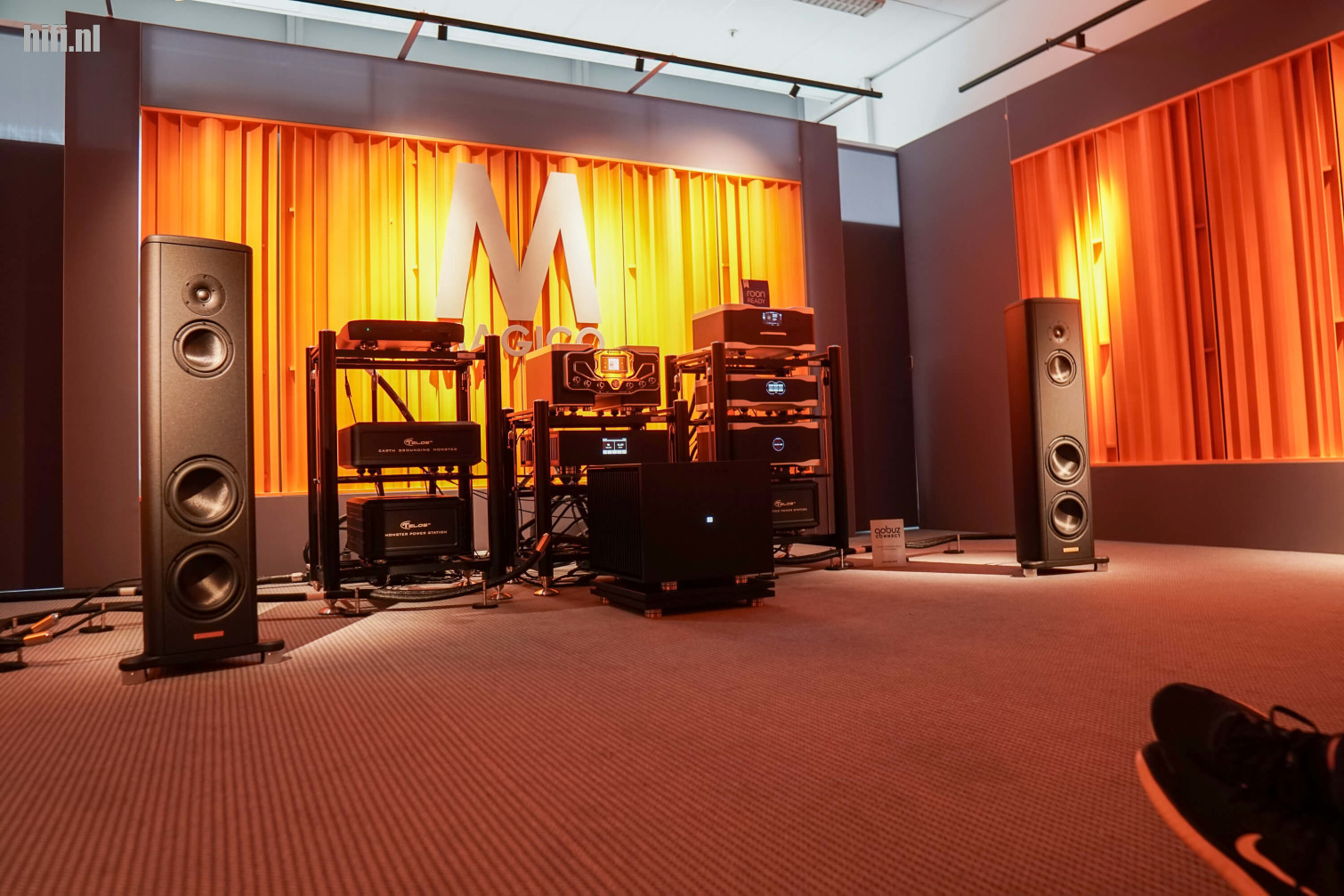 De oranje gloed die de Magico-kamer verspreidt kun je tot in de gang zien. Het is een oproep aan hifi-liefhebbers om eens te komen luisteren naar de S2-speakers, die hier hun wereldpremière kregen. Ze vormen de nieuwe instappers in het Magico-universum, maar zijn daarom niet minder compromisloos.