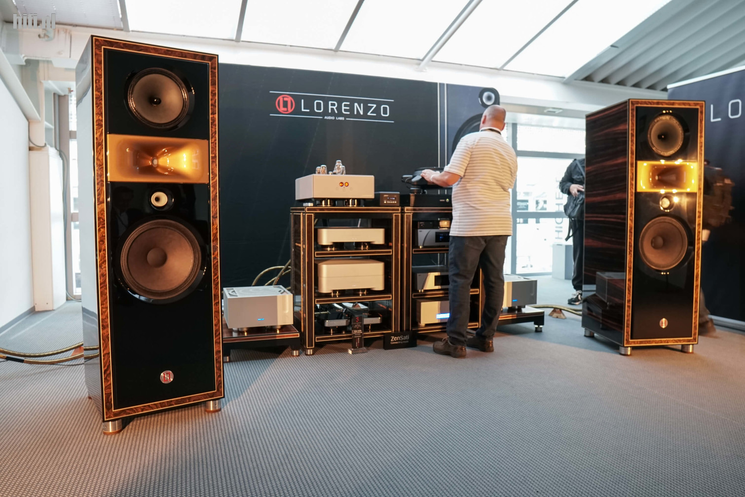 Lorenzo Audio Labs, met thuisbasis in het Spaanse Granada, bracht naar HEM zijn ultieme Reference-speakers mee. Het klonk aangenaam, al moeten we bekennen dat het zeer weelderige afwerking – volledig met de hand gedaan – was die echt ons de kamer introk.