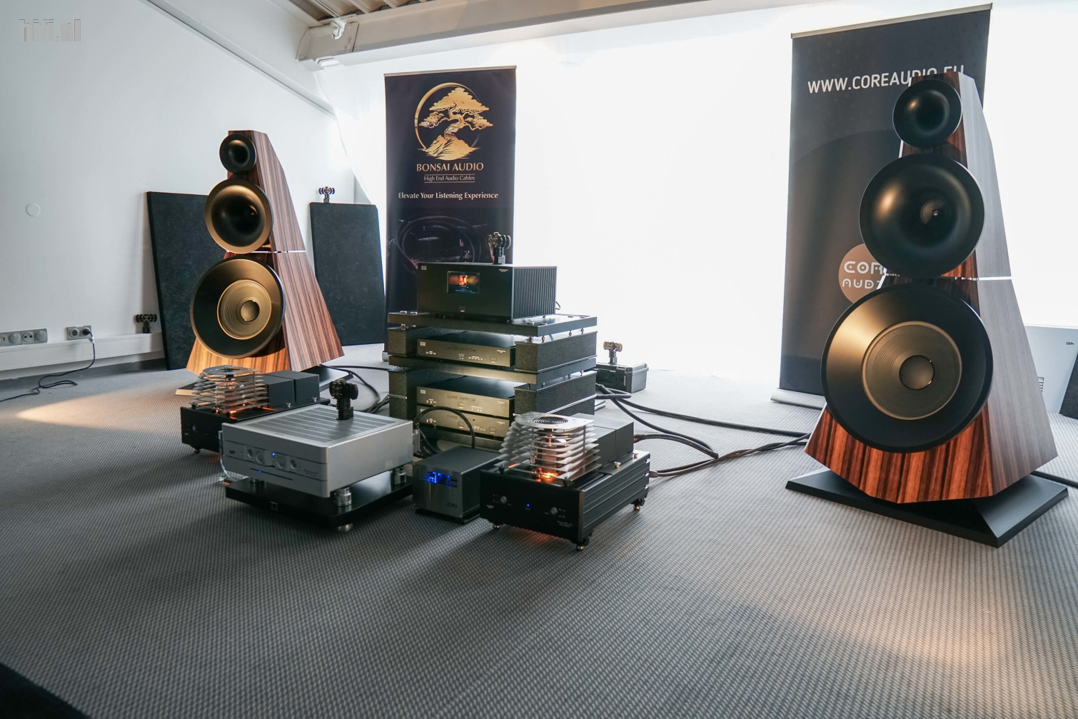 De grote Odeon Audio Carnegie-speakers trokken enorm de aandacht, maar ook Core Audio had hier een heel stapel digitale bronapparatuur geparkeerd, van streamer over klok en DAC. Klonk niet slecht!