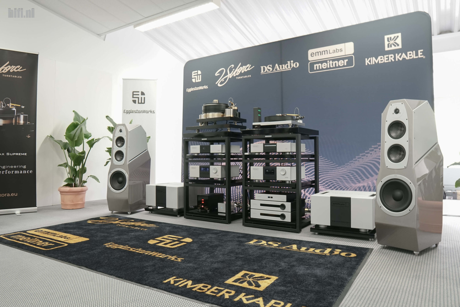 Het eerste waar mensen naar kijken is altijd de luidsprekers. Bij deze EgglestonWorks Andra 5-torens is dat begrijpelijk, want ze speelden mooi. Het valt minder op dan grote weergevers, maar de echte ster is hier DS Audio. Met z'n optische cartridges was het merk een subtiele aanwezigheid in niet minder dan elf kamers op HEM.