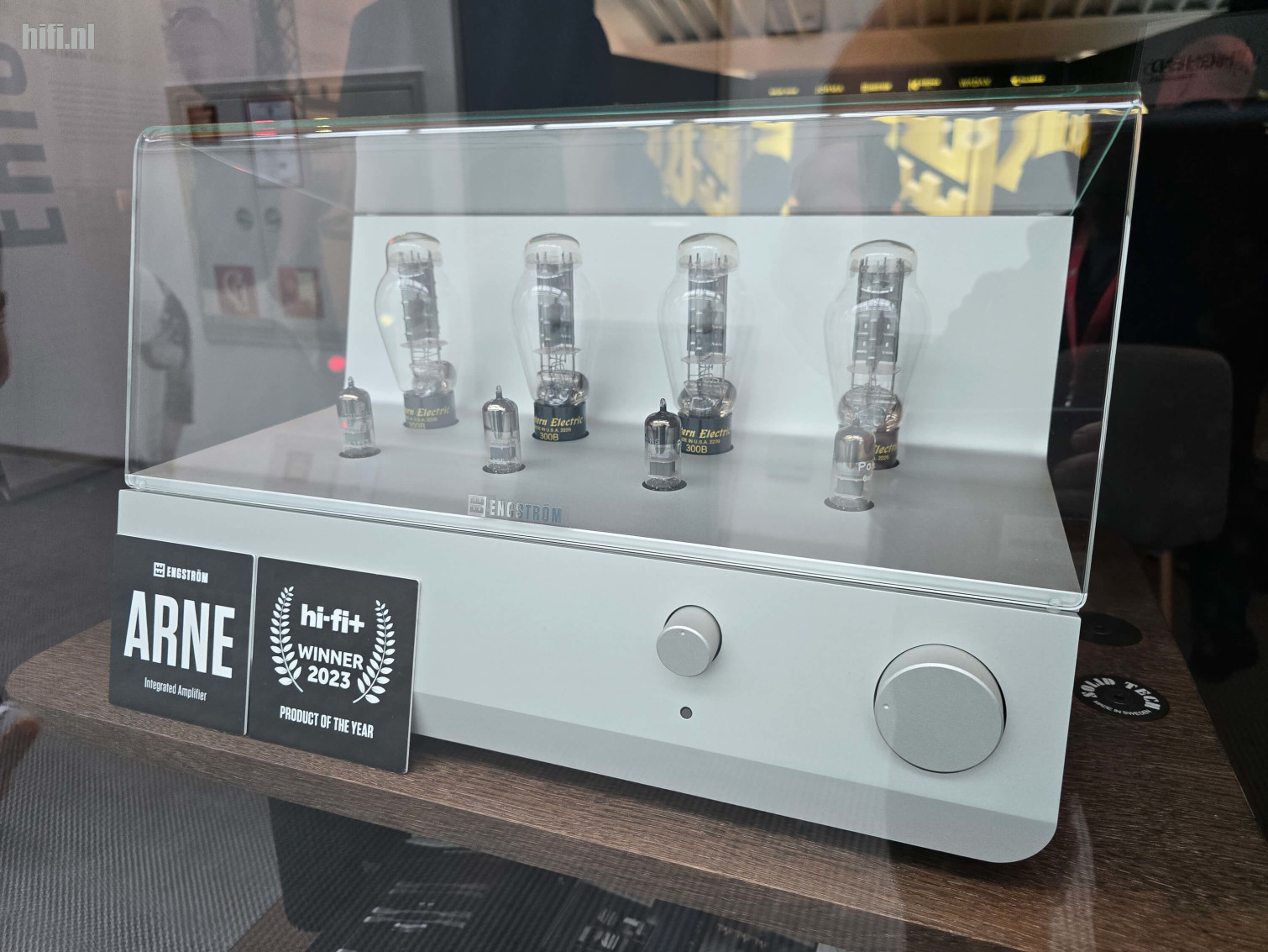 De Arne trok de aandacht met z'n mooi design. Of het goed speelt, weten we niet, want het stond enkel statisch opgesteld. Dit is eigenlijk de nieuwere Mk2-versie van de geïntegreerde versterker op basis van 300B-buizen die Zweedse fabrikant Engström uitbrengt. Hun toestellen dragen altijd een voornaam, die meestal verwijzen naar een Zweedse artiest.