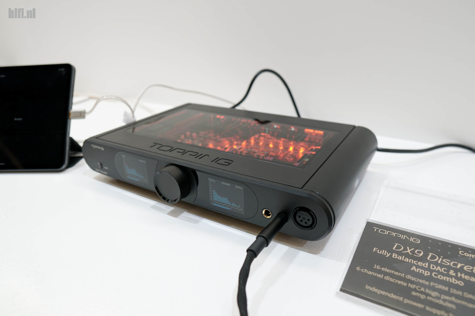Topping is een Chinese DAC-bouwer (en meer) die in de headfi-wereld goed ligt. Duur zijn hun spullen niet echt en als het op metingen aankomt lijken hun producten het meestal goed te doen. Deze DX9 met doorzichtige bovenkant zag er interessant uit, en het merk is zoals wel meer Chinese uitdagers van plan om nog veel te lanceren. Eentje dat interessant klonk en net naast deze DX9 geparkeerd werd was de D90III Discrete, een DA-convertor met 1-bit DAC-module.