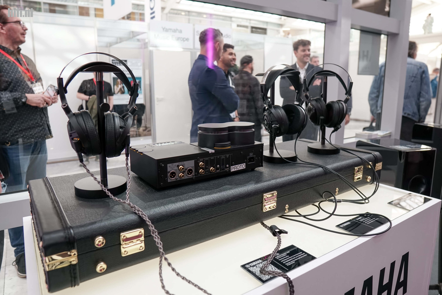 Yamaha had twee stands op de High End-beurs: eentje met hifi en deze in de Headphone World-zone. Logisch, want na het succes van de YH-5000SE en HA-L7A-DAC/versterker gaat het Japanse bedrijf een vervolg breien aan hun headfi-verhaal. Zo komt er een goedkopere (maar nog altijd premium) YH-4000SE (met dezelfde planar-magnetic-drivers) en een gesloten YH-C3000 (met dynamische drivers). Ook de HA-3000A, een simpelere versie van de HA-L7A staat op de planning.