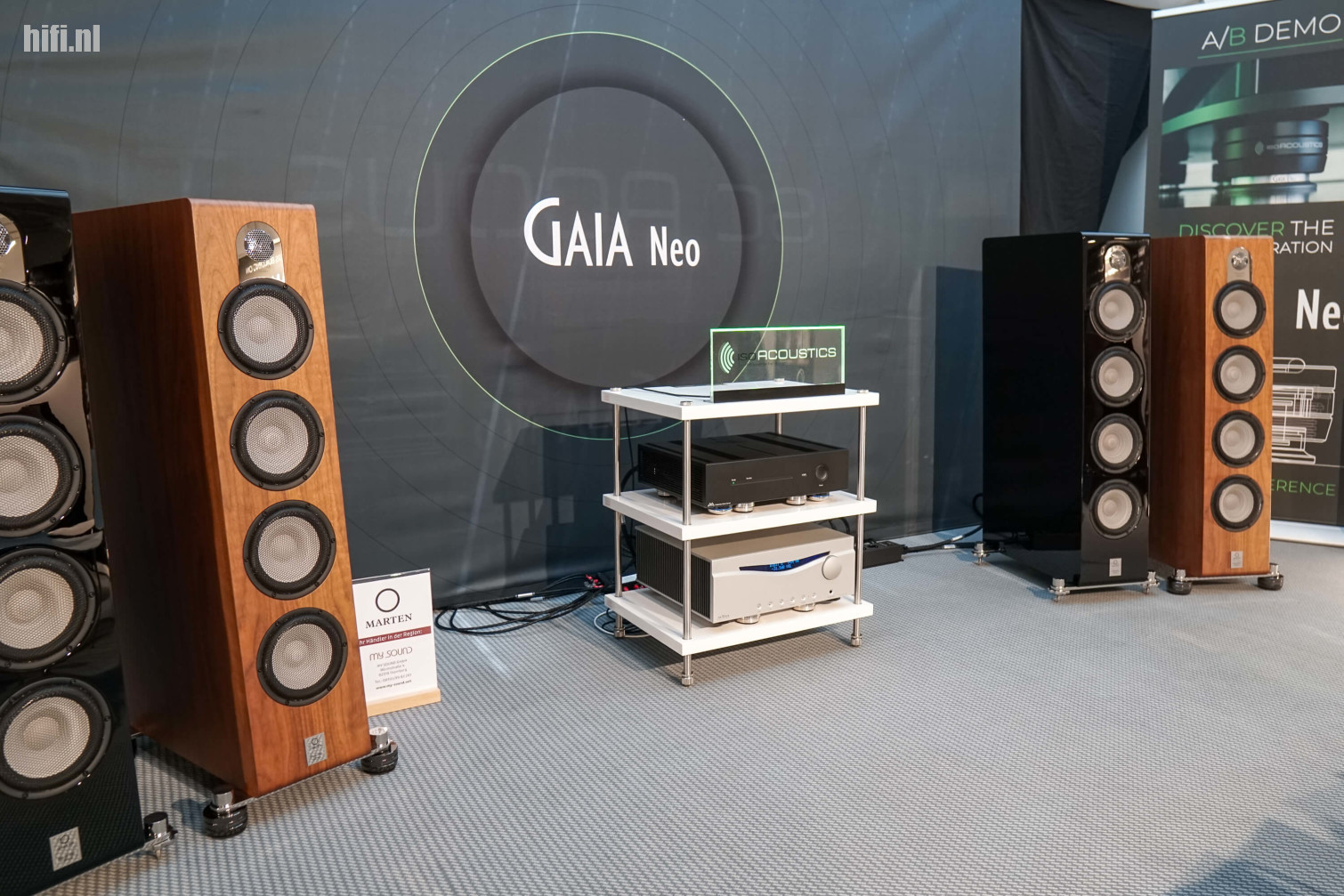Marten, het merk uit Zweden dat graag z’n speakers vernoemd naar bekende jazzmuzikanten, was heel aanwezig op deze HEM-editie. Onder meer een Coltrane Super Extreme in een inkomhal was niet te missen.