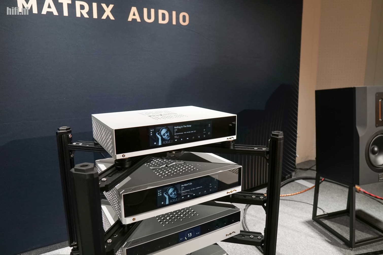 Matrix Audio heeft heel wat volgelingen vergaard met steengoede DAC's en streamers. Maar met de M-reeks die je hier ziet mikt de Chinese merk heel wat hoger. Hier gaan we meer van horen. De speaker rechts? Een Fink Team Kim, wat heel goed matchte.