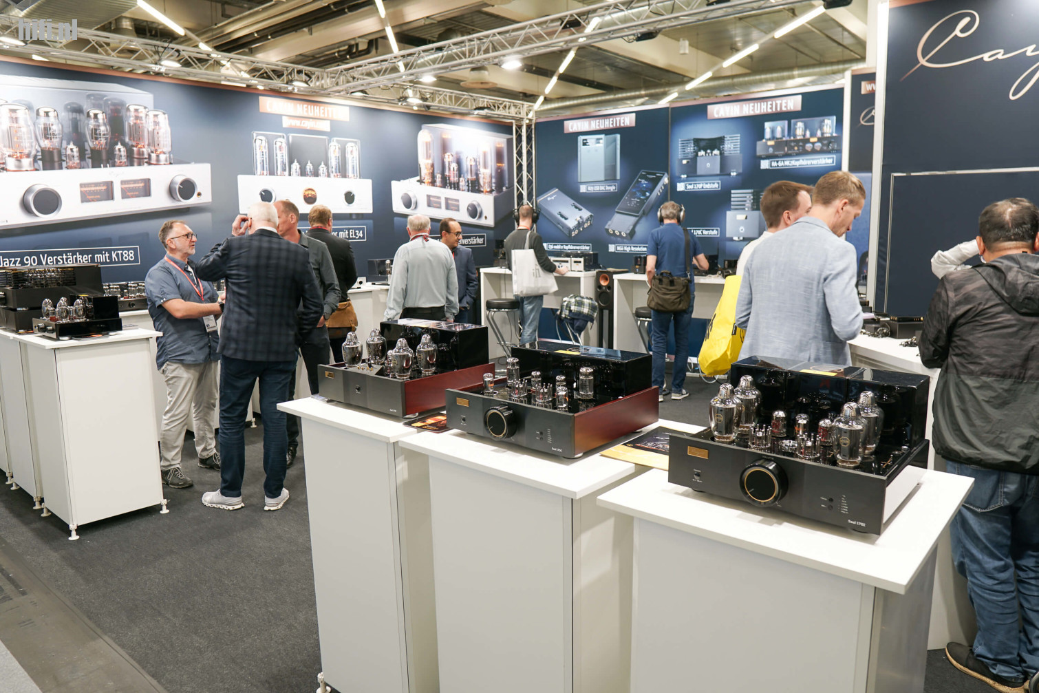 Veel volk op de stand van Cayin, een firma die weet hoe op een kleine oppervlakte heel veel te presenteren. Het is een merk die heel breed in de markt staat en HEM aangreep om onder meer de Soul 170C/170P voor- en eindtrap met buizen te presenteren, maar ook mobiele oplossingen en hoofdtelefoonversterkers.