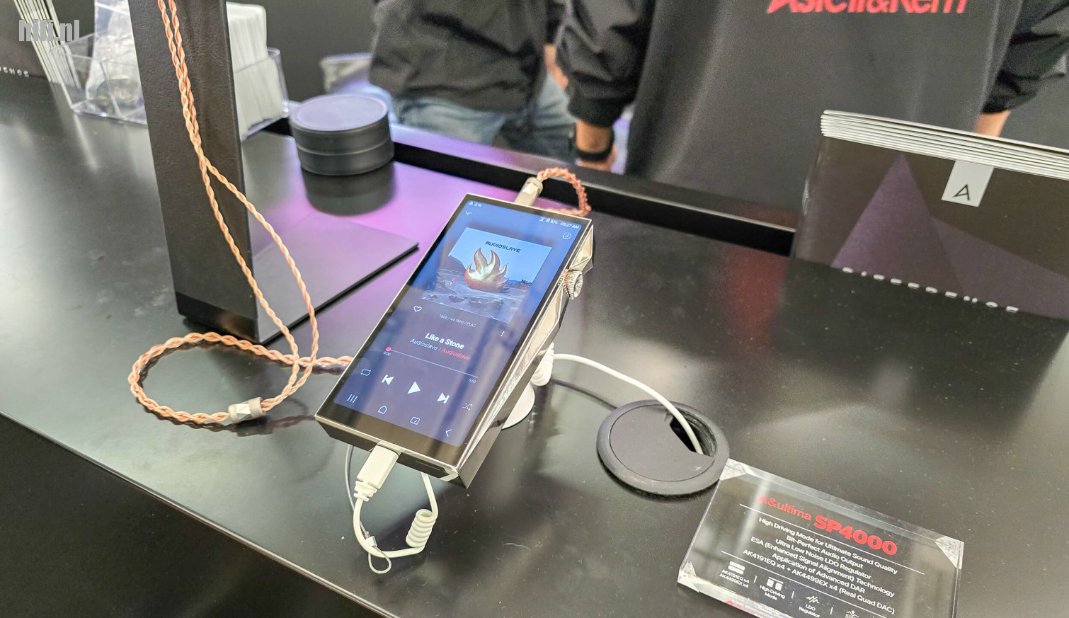 Astell & Kern werkt voor IEM's graag samen met een gespecialiseerde partner. In dit geval 64 Audio, een IEM-bouwer die graag met veel drivers werkt. In dit geval gaat ze niet voor het extreme: elk toestel bevat 'slechts' tien drivers, verpakt in een stalen behuizing met een fraaie 'diamond-like-carbon'-afwerking. Niet op de foto, maar wel heel begerenswaardig: de A&ultima SP4000, de nieuwe vlaggenschip-speler van A&K.