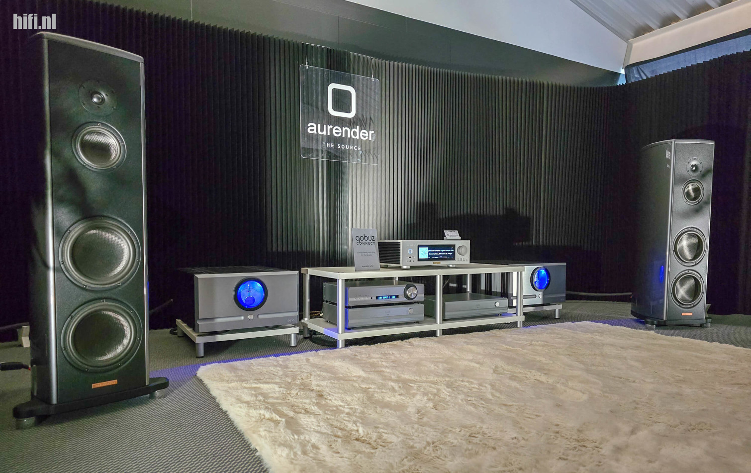 Elders op de show presenteerde het Italiaanse Riviera hun AFM70, maar hier mochten twee AFM100SE-eindtrappen (zo te zien in de Special Edition met de gouden accenten) in volledige klasse A 100 W per kanaal leveren aan een paar Divin Comtesse-weergevers van Göbel.