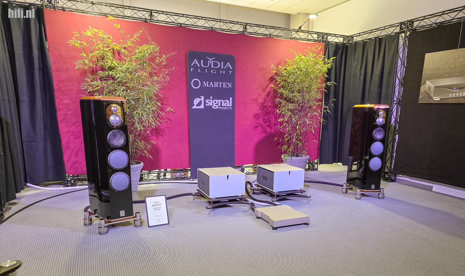 Machtige maar toch elegante Vitus Audio-versterking die de grote SV-Audio Menia's aansturen in een naar HEM-normen eenvoudig systeem, het was een geslaagd huwelijk.