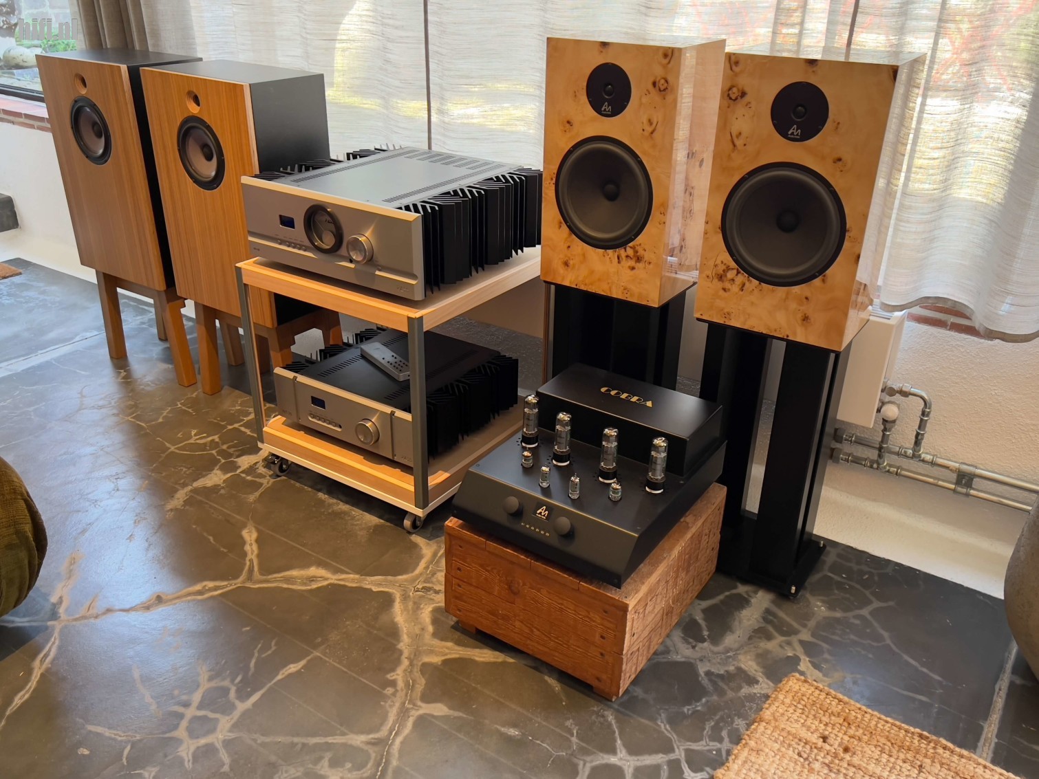 De SL-1000 R wordt aangevuld door twee Aurorasound VIDA mk II phono stages in dual-mono opstelling voor een maximale kanaalscheiding. De digitale muziek komt van de Audio Note DAC 3.1X/II Balanced DAC aangestuurd door een Auralic Aries S1 streaming transport met gescheiden PSU-stroomvoorziening.