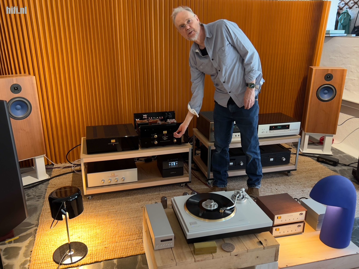 Zo zien we onder anderen een oude Garrard 301 platenspeler met twee gloednieuwe toonarmen en een bijzondere composiet plint. “Op Instagram vind je veel van die speciale draaitafels, maar niet iedereen is in staat om al die verschillende componenten op een correcte manier samen te stellen”, zegt hij geamuseerd.