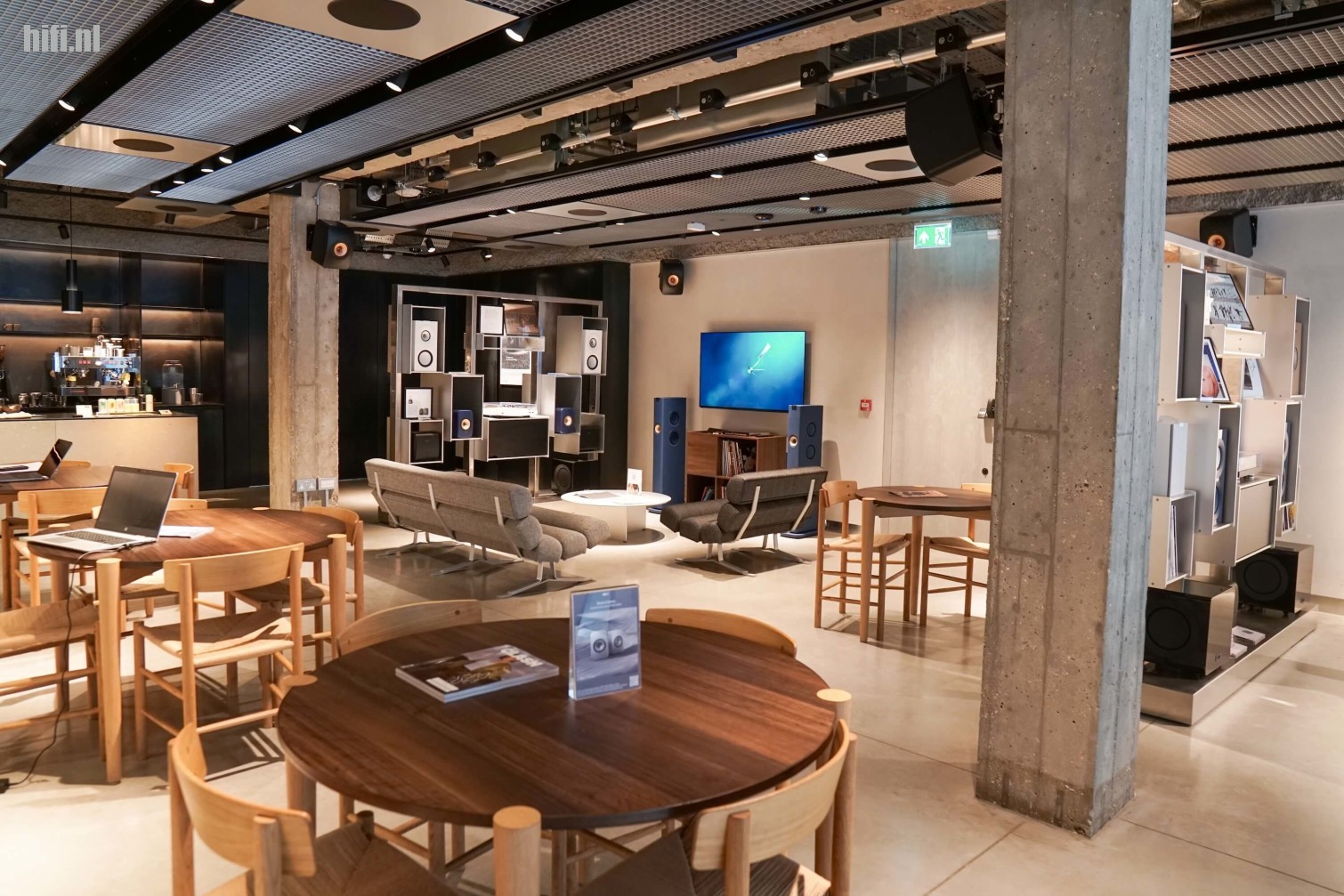 Dat de ruimte vol staat met – vooral – actieve KEF-speakers en -headfi kan niet ontkend worden, maar het is subtiel gedaan, als deel van het decor. KEF wil hier eerder verleiden en informeren dan echt verkopen. “De producten staan hier opgesteld, maar de bedoeling is vooral om mensen nieuwsgierig te maken. Als ze willen, kunnen ze meer informatie krijgen over bijvoorbeeld een LS50 Wireless II. Maar gewoon met een paar vrienden hier een paar flat whites drinken en keuvelen, dat kan prima.”