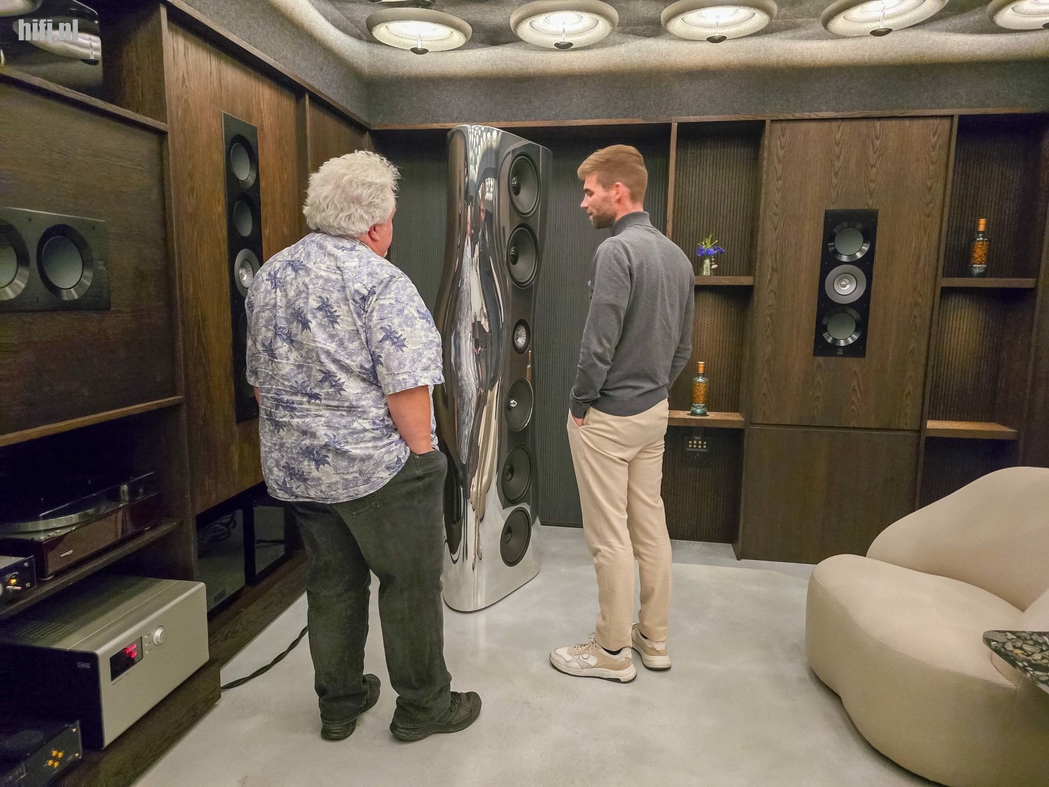 Over die gigantische, blinkende speaker gesproken, ook de Muon is aanwezig in de Music Gallery. Bijzonder, want de 220.000-euro kostende weergever ontworpen door Ross Lovegrove is heel, héél exclusief. Ooit bedoeld als showcase van de ultieme technologie die KEF kon bouwen, inmiddels heeft het bedrijf weer wat stappen gezet, onder meer met MAT en een nieuwe generatie Uni-Q. Maar toch: er zijn maar 100 paar gebouwd, dus veel kans heb je anders niet om ze te horen. Een luistersessie Muon grepen we dus met veel plezier aan. Over de aansturing trouwens geen klachten. Met Electrocompaniet, Soulution-eindtrappen en een high-end streamingbron van Lumin, met een Thorens TD1600 voor de occasionele vinylsessies, zit je op dat vlak gebeiteld.