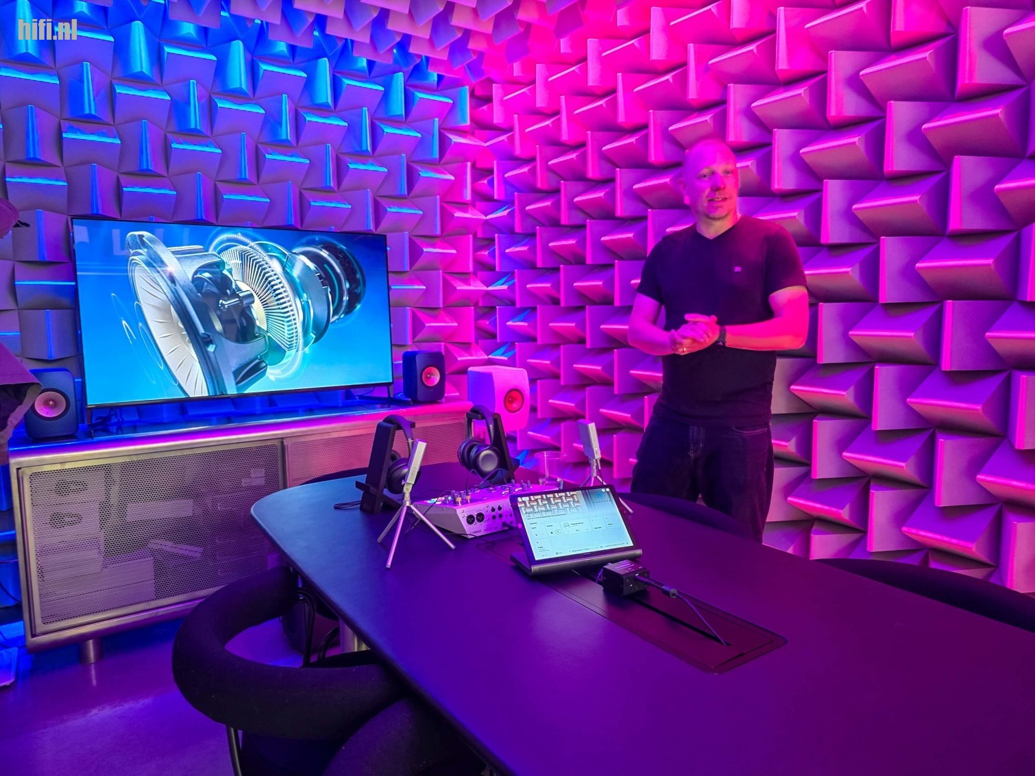 Letterlijk naast de KEFé is er nog een ingerichte, heel stille ruimte die gebruik wordt voor het opnemen van podcasts. Ook dat is iets dat derden kunnen gebruiken, bijvoorbeeld voor een interview met een artiest. De wand tussen de koffieplek en de Studio is helemaal doorzichtig, dus ook een live-publiek kan zo’n opname bijwonen. “We gebruiken het daarnaast ook als extra ruimte als iemand echt pakweg een paar LS50 Wireless II’s met een KC62-subwoofer wil beluisteren.”