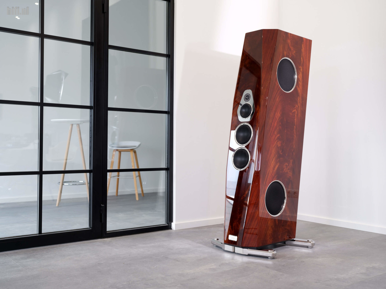 Nog een paar feitjes van La Assoluta om een idee te kunnen vormen waarover we praten, de laklaag is ongeveer 4mm dik, wordt laagje voor laagje opgebracht en steeds gepolijst tot een perfect oppervlak is bereikt. Het onderliggende fineer bestaat uit twee lagen van de hoogste kwaliteit verkrijgbaar. De drivers zijn gevat in een metalen bus (tweeter) of omgeven door een metalen ring (woofers+midrange), net als de voeten vervaardigd uit met de hand gepolijst RVS. Met de hand gepolijst RVS gaat een leven lang mee en verliest zijn glans niet, is sterk en solide, heeft een uitstraling om de kwaliteit van een TIDAL te onderscheiden van de rest van de markt.