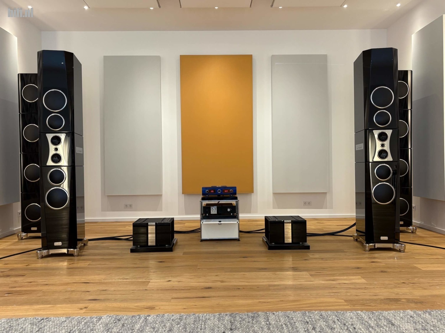 Het bezoek beperkt zich tot deze locatie, noordelijker in Duitsland worden de luidsprekerkasten gemaakt en in het zuiden wordt elektronica ontwikkeld en gebouwd. Ook die beide bedrijven zijn voor de volle 100 procent onderdeel van TIDAL. Tot mijn grote genoegen is er in Erftstadt ook een luisterruimte waar de TIDAL X Bugattiluidsprekers staan opgesteld naast de top van TIDAL, een set La Assoluta luidsprekers bestaande uit vier kolommen met een totaalgewicht van circa 2000 kilo. Dat geeft misschien al aan in welk segment TIDAL opereert, het absolute topsegment van de high-end audio waar geen enkel compromis gesloten wordt als het gaat om weergave en perfectie.