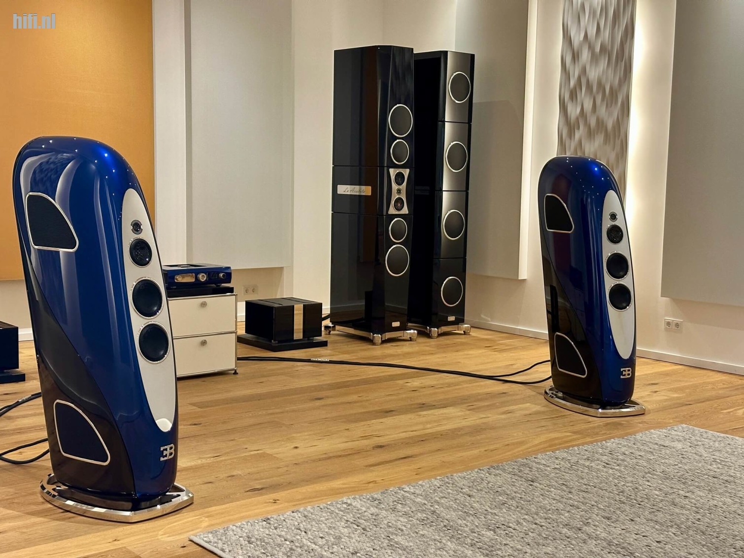 Hier zit een kracht en een slam in die je meemaakt bij live concerten of in een disco. Maar dan zonder het in je maag stompende laag. Een potje slagwerk knalt door de ruimte, laat alle aanwezigen met stomheid geslagen achter. Het is eigenlijk niet te beschrijven wat er voor onze neus afspeelt. Uit twee relatief kleine weergevers (144 x 28 x 60cm) haalt TIDAL een muziekbel, loepzuiver, zo dynamisch dat de term dynamiek voor ieder ander niet meer toegepast mag worden. Een puntje van kritiek waarin ik niet de enige was, een Bugatti The Royale is ongelofelijk indrukwekkend, maar als het gaat om absolute benadering van de werkelijkheid gaat mijn voorkeur nog steeds uit naar de viermaal duurdere, passieve La Assoluta. The Royale geeft meer spektakel, een onvergetelijke expressie van muziek, is veel gemakkelijker te plaatsen, is actief en vraagt dus niet om zware eindversterkers, is leverbaar in haast alle denkbare kleurstellingen enzovoort. Zal daarmee voor veel klanten een stuk aantrekkelijker zijn dan La Assoluta. Het is een kunstwerk an sich wat TIDAL Audio weet te bieden.