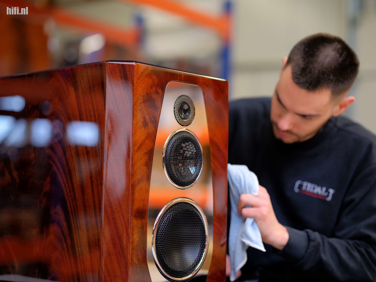 Compromisloos werken bij TIDAL houdt onder andere in het aanbrengen van 100 kilo lak per set Assoluta’s, het dubbel fineren van elke kast waardoor nooit de ondergrond te zien zal zijn. Wat te denken van een sandwichconstructie voor alle modellen bestaande uit vijf lagen samengeperst HDF en TIRALIT, verlijmd met taaiblijvende lijmsoorten om resonanties om te zetten in warmte; de dubbele fineerlaag, hoogglans lakafwerking, het gebruik van tweeters en midrange met diamant, al het gepolijste RVS en niet te vergeten de scheidingsfilters. Duelund spoelen worden gewikkeld met zuiver zilver of koper.