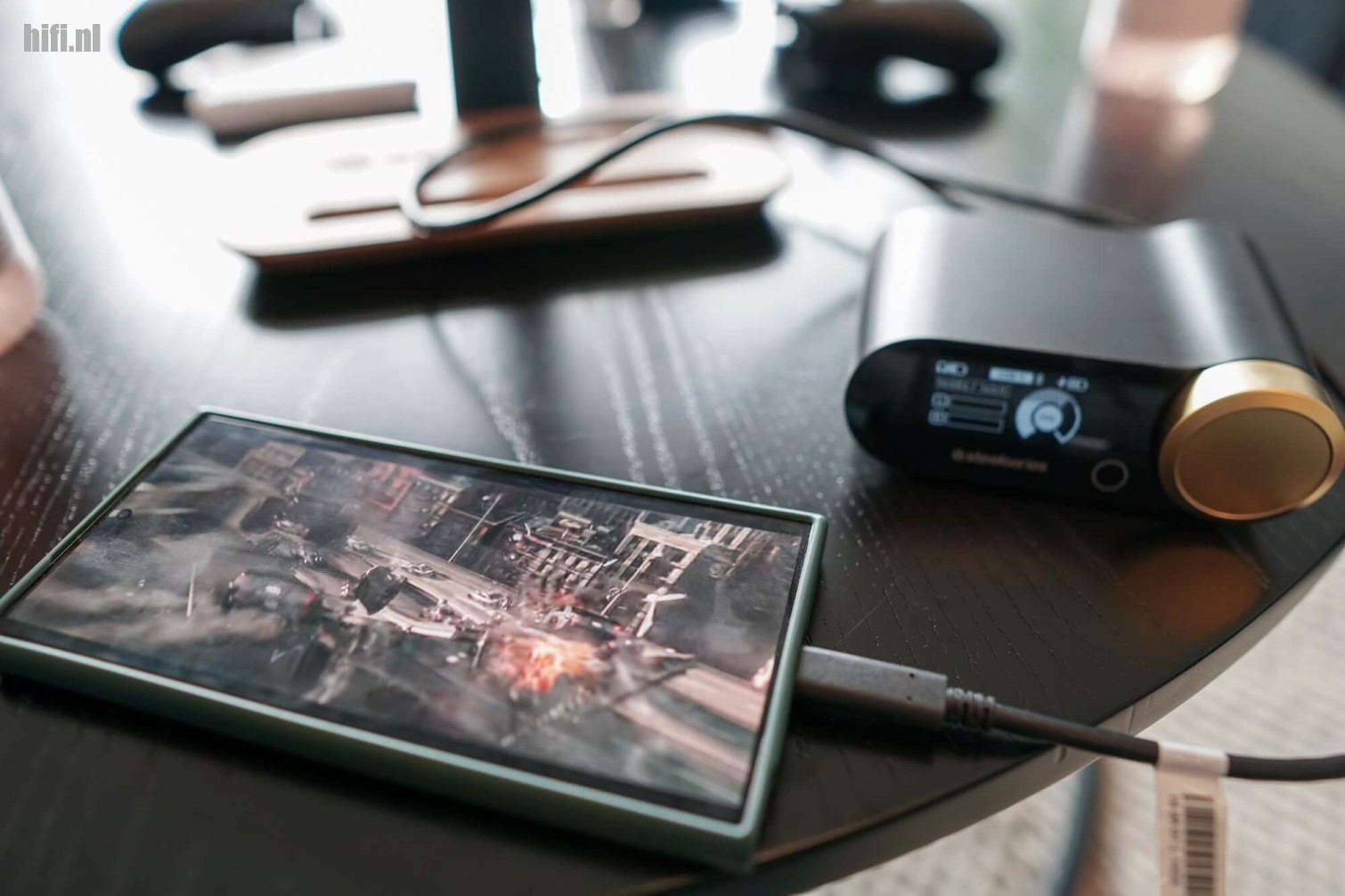 Streams tot 96 kHz/24-bit zijn welkom, stellen we vast. Op de hub is een OLED-scherm en een grote draaiknop die je gebruikt om het volume te regelen. Steelseries staat al heel lang voor een hoge mate van instelbaarheid, en dat is hier ook. Via hun GG-software kun je op het scherm andere zaken tonen dan het volumeniveau of de kwaliteit van de afgespeelde stream. Je kunt bijvoorbeeld metadata van nummers die je via Tidal beluistert tonen.