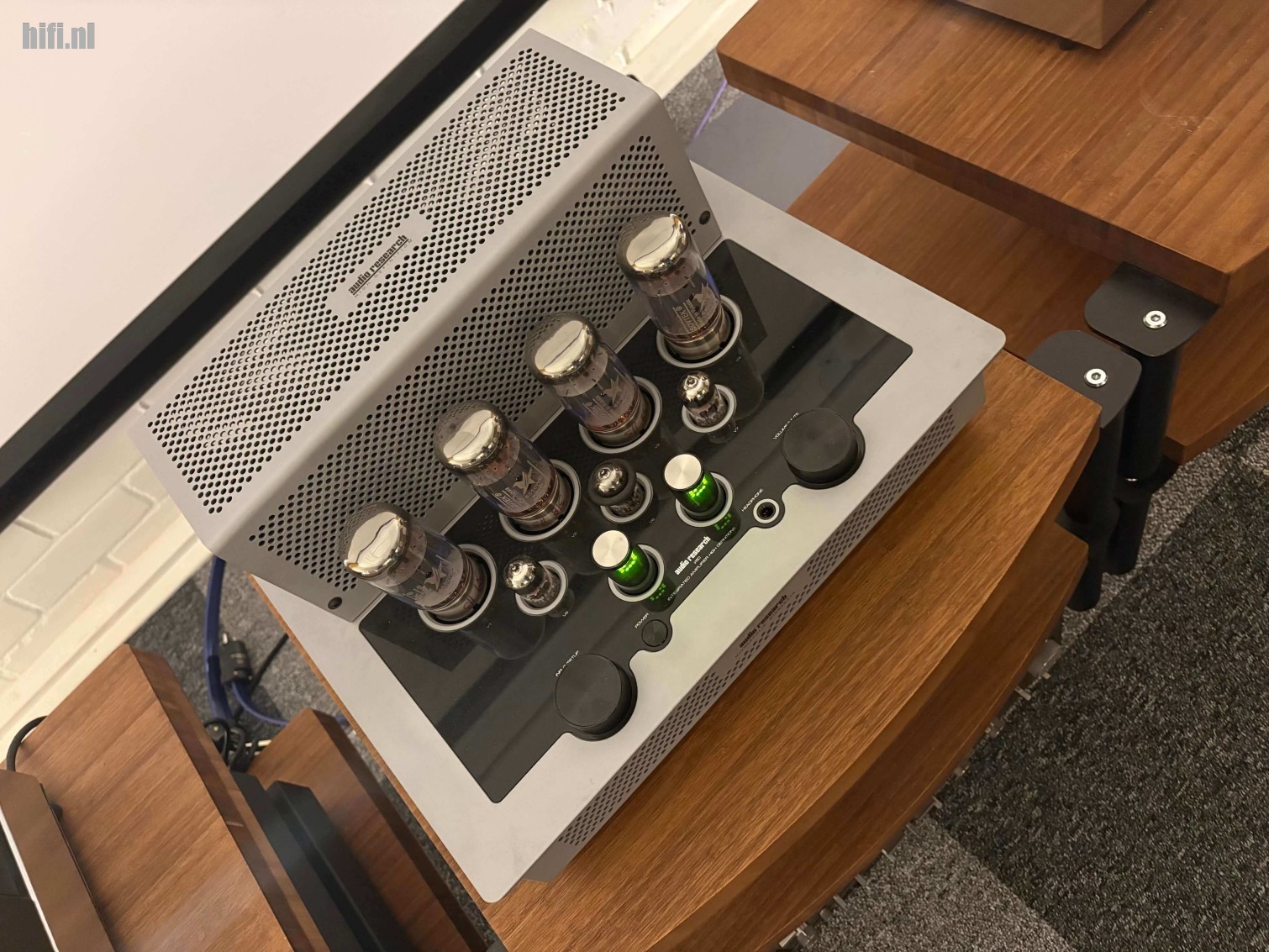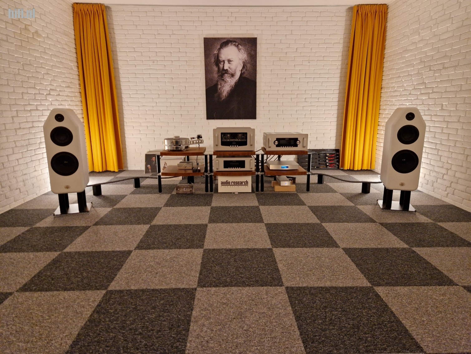Om te kunnen luisteren naar de luidsprekers, opgesteld in de kleinere luisterruimte van Da Capo High End Audio, staat een Matrix X2 Pure streamer/dac opgesteld. In eerste instantie gekoppeld aan een NuPrime AMG STA SE eindversterker, maar op mijn verzoek wisselen we van NuPrime naar een Audio Research i50 geïntegreerde versterker welke meer mijn voorkeur is om naar te luisteren. Bekabeling is zoals altijd bij Da Capo High End Audio van het merk Wireworld. Als we later deze dag verhuizen naar de grote ruimte waar Magnum Opus staat opgesteld, dan wordt daar gespeeld met een Lumin streamer/dac en nu wel met NuPrime versterking.