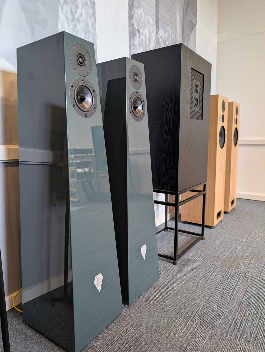 De twee foto's van de Ophidian speakers in kamer 26 zijn van onze vrienden van HiFi Pig, wiens uitstekende DAE-verslag je via deze link kunt lezen.