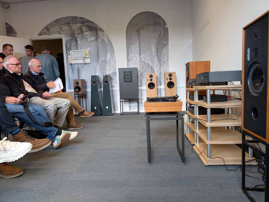 Tijdens de luistersessie mochten we genieten van de LS8/1. Een hommage aan de door de BBC gebruikte studio monitors. In de ruimte was overigens ook de LS8/1f te bewonderen. De vloerstaande variant.