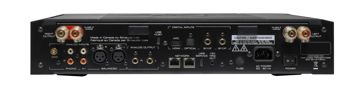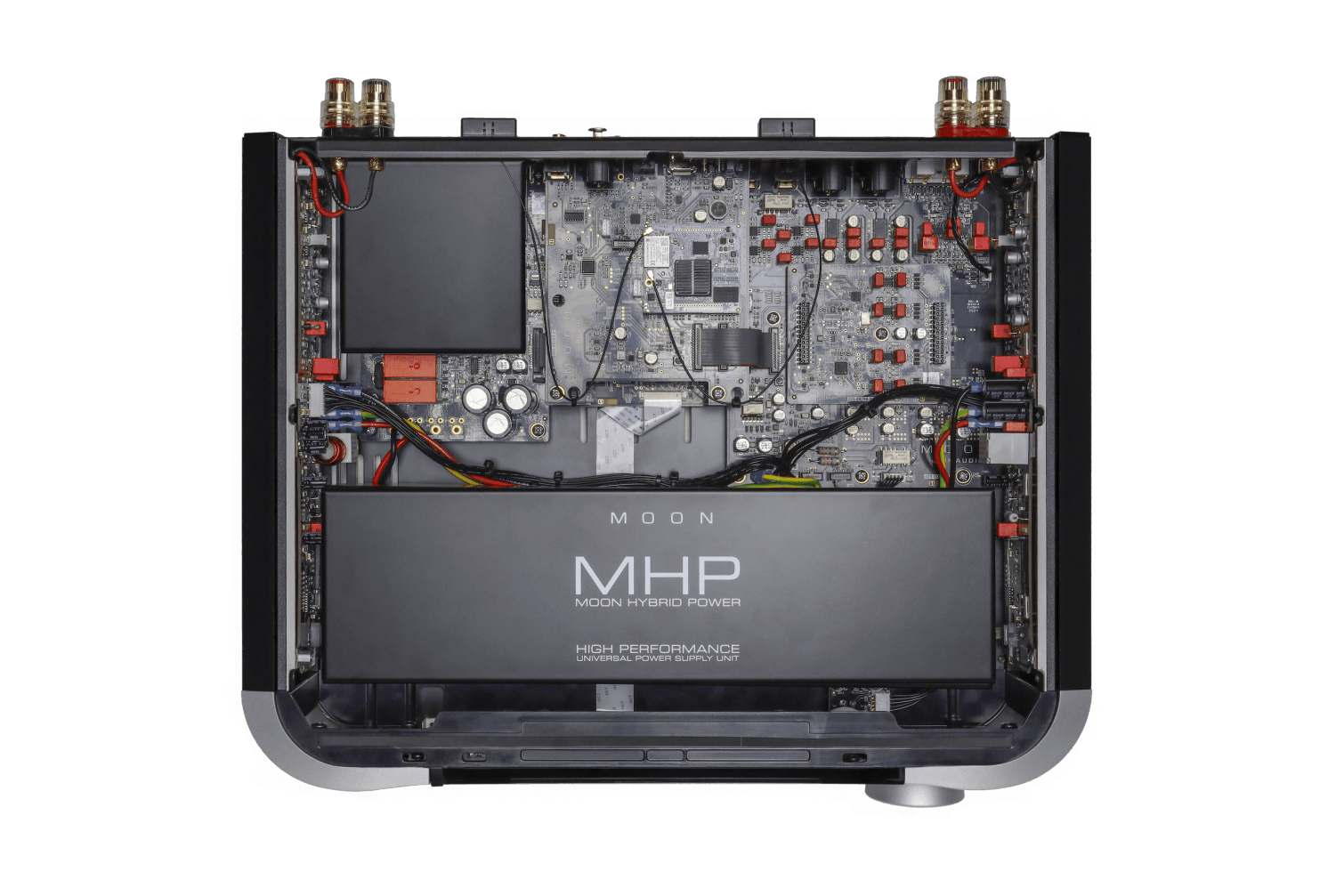 Digitaal heeft de versterker een HDMI ARC, optisch Toslink in en twee coaxiale S/PDIF ingangen. Tenslotte zijn er twee USB-C poorten, een trigger aansluiting en twee RJ45 aansluitingen toegevoegd voor een vaste netwerkconnectie en MOONLink. Deze laatstgenoemde is een merkeigen communicatiesysteem waarmee de verschillende MOON-componenten zoals netwerkspelers, voor- en eindversterkers via een RJ-45 netwerkkabel met elkaar kunnen communiceren. Functies als stand-by, volumeregeling, inputselectie en display instellingen worden voor alle gekoppelde apparaten centraal via MOONLink geregeld. Bovendien maakt MOONLink het mogelijk om firmware-updates en systeeminstellingen voor alle gelinkte apparaten gelijktijdig door te voeren.