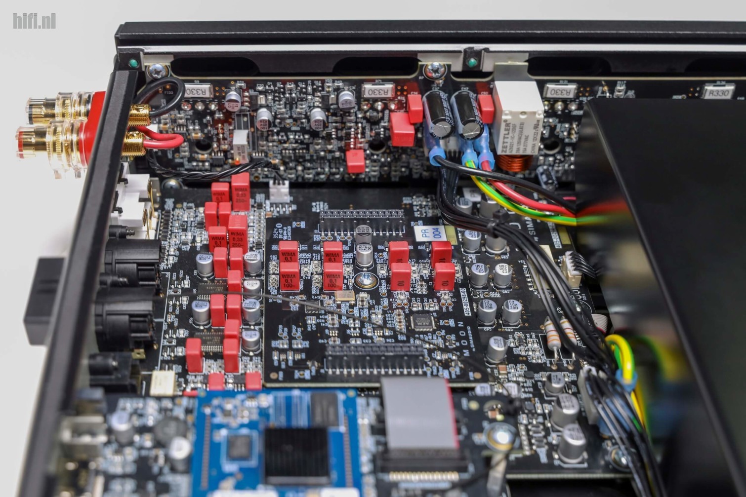 Ten slotte heeft deze knappe streamingversterker nog een ingebouwde MM/MC phonostage. Deze RIAA-versterker heeft een vaste ingangsimpedantie van ongeveer 9,5 kilo-ohm en levert een gain van 40 dB. Hier voelen de meeste MM en MC elementen met een gemiddeld uitgangsniveau zich als een vis in het water bij.