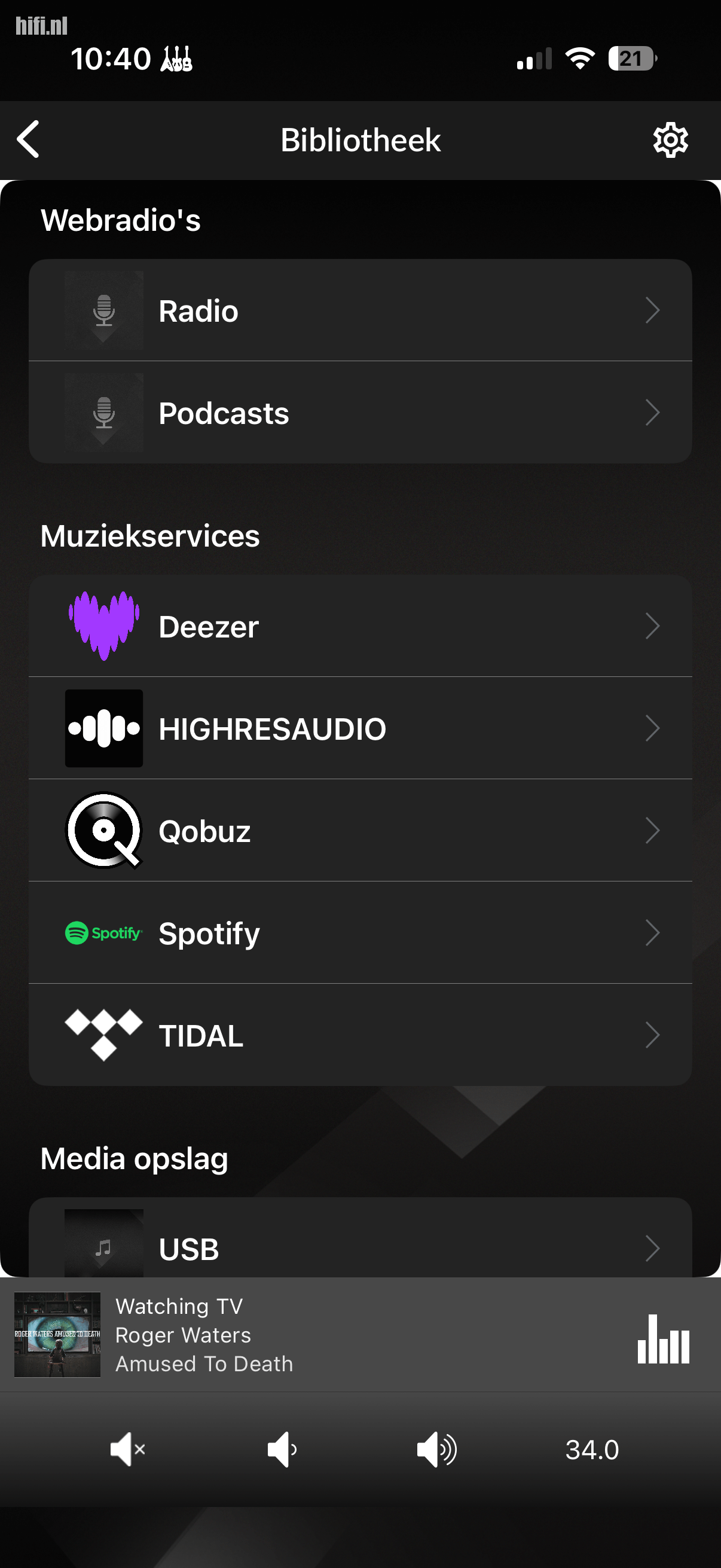 Heb je meerdere MOON componenten, dan kies je eenvoudig het apparaat in de gewenste zone. Via de bibliotheek tabblad selecteer je met een klik internetradio, podcasts, Deezer, Highresaudio, Qobuz, Spotify of Tidal. Gebruik je een USB-stick of UPnP-mediaserver, dan benader je deze ook via dit tabblad. Hierbij heb je de keuze de muziekserver mapje voor mapje te doorbladeren of deze op genre, artiest, album, albumartiest, afspeellijst of slimme afspeellijst te verkennen.