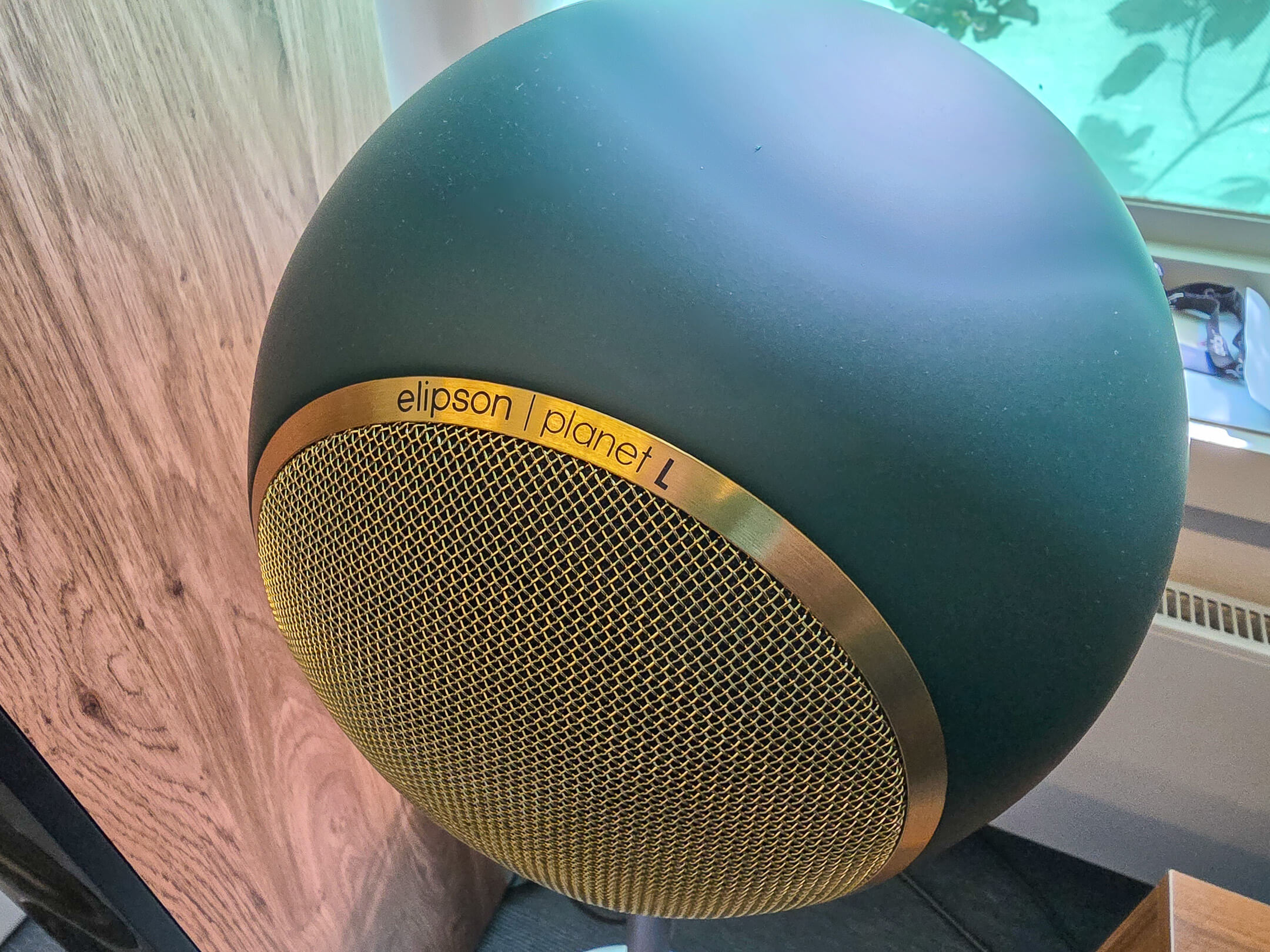 Hier was het systeem van dienst een (zeer volledige) P1-voorversterker en een paar A2700-eindtrappen van Elipson – deze componenten hebben we een tweetal jaar geleden voor het eerst gehoord bij een bezoek aan AV Industry, het moederbedrijf achter Elipson. Fijn om deze versterkers van een van de oudste luidsprekerbouwers uit Frankrijk nu ‘in het veld’ te ontmoeten. Wie Elipson zegt, zegt natuurlijk ook ‘Planet’. Het bedrijf heeft nu eenmaal een reputatie qua eigenzinnig design hoog te houden. Zelfs de conventioneel ogende Prestige Facet II-vloerstaander pakt zou uit met een zeer hoekige surround rond de drivers. Maar de echte blikvanger, dat bleef toch de groen met goud Planet L-speaker. Iconischer kon bijna niet!