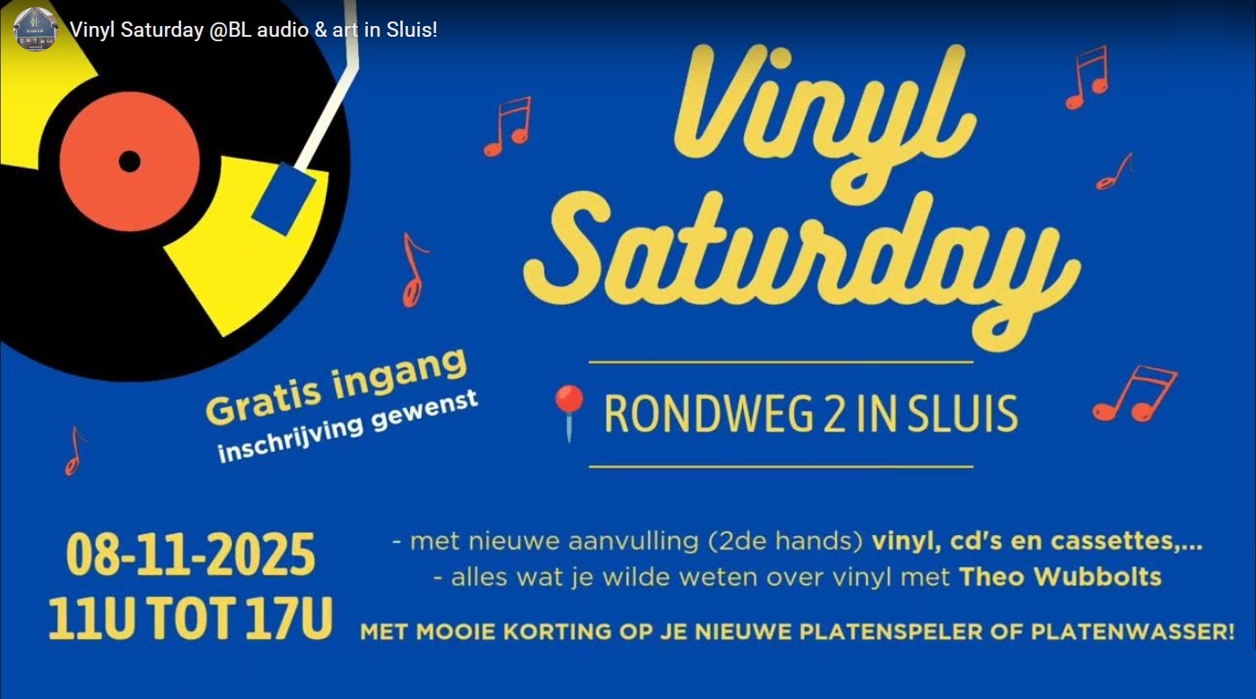 De in Sluis gevestigde audiodealer BL audio & art zal op zaterdag 8 november a.s. een dag vol muziek, beleving en liefde voor alles wat met vinlyplaten te maken heeft organiseren. Op zaterdag 8 november verandert de audiowinkel in een paradijs voor vinylliefhebbers. Of je nu al jaren platen verzamelt of net je eerste platenspeler hebt gekocht, Vinyl Saturday is er voor iedereen die de charme van analoge muziek wil beleven. De toegang is gratis maar belangstellenden moeten zich van tevoren wel even opgeven.