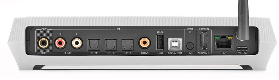 Alle bronnen worden rechtstreeks op deze externe hub aangesloten, waardoor de luidsprekers vrij en eenvoudig kunnen worden geplaatst, zonder dat er kabels tussen de luidsprekers zitten. Dit ontwerp vereenvoudigt de installatie, biedt volledige flexibiliteit bij de plaatsing en zorgt voor een naadloze integratie in elk interieur.