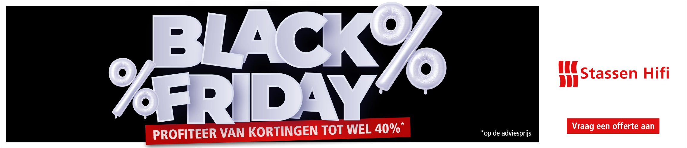 Black Friday is begonnen bij Stassen Hifi. Vanaf nu biedt Stassen Hifi kortingen tot wel 40% op de adviesprijs. Je kunt contact opnemen met Stassen Hifi en een offerte voor het gewenste producten aanvragen.