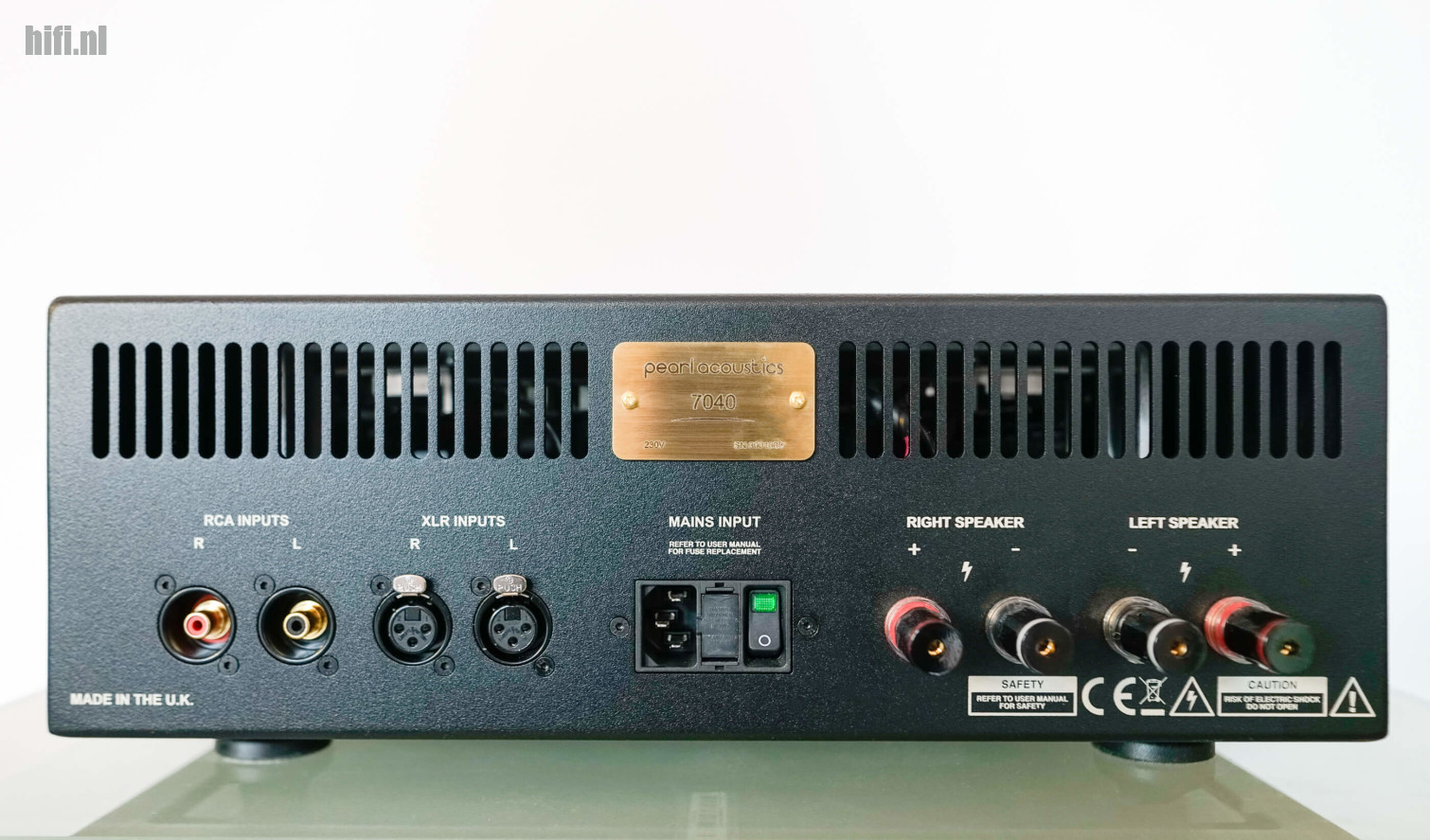 Ondanks het gebrek aan uiterlijke kenmerken is het niet een eenvoudige doos waarin de 7040 woont. De solide kast is helemaal naad- en schroefloos, wat het een understated uitstraling geeft die bij nadere inspectie vele indruk maakt. Van Pearl horen we de ‘Made in the UK’-behuizing door z’n dikte en de poederlakafwerking een significant deel van de productiekost opslokt.