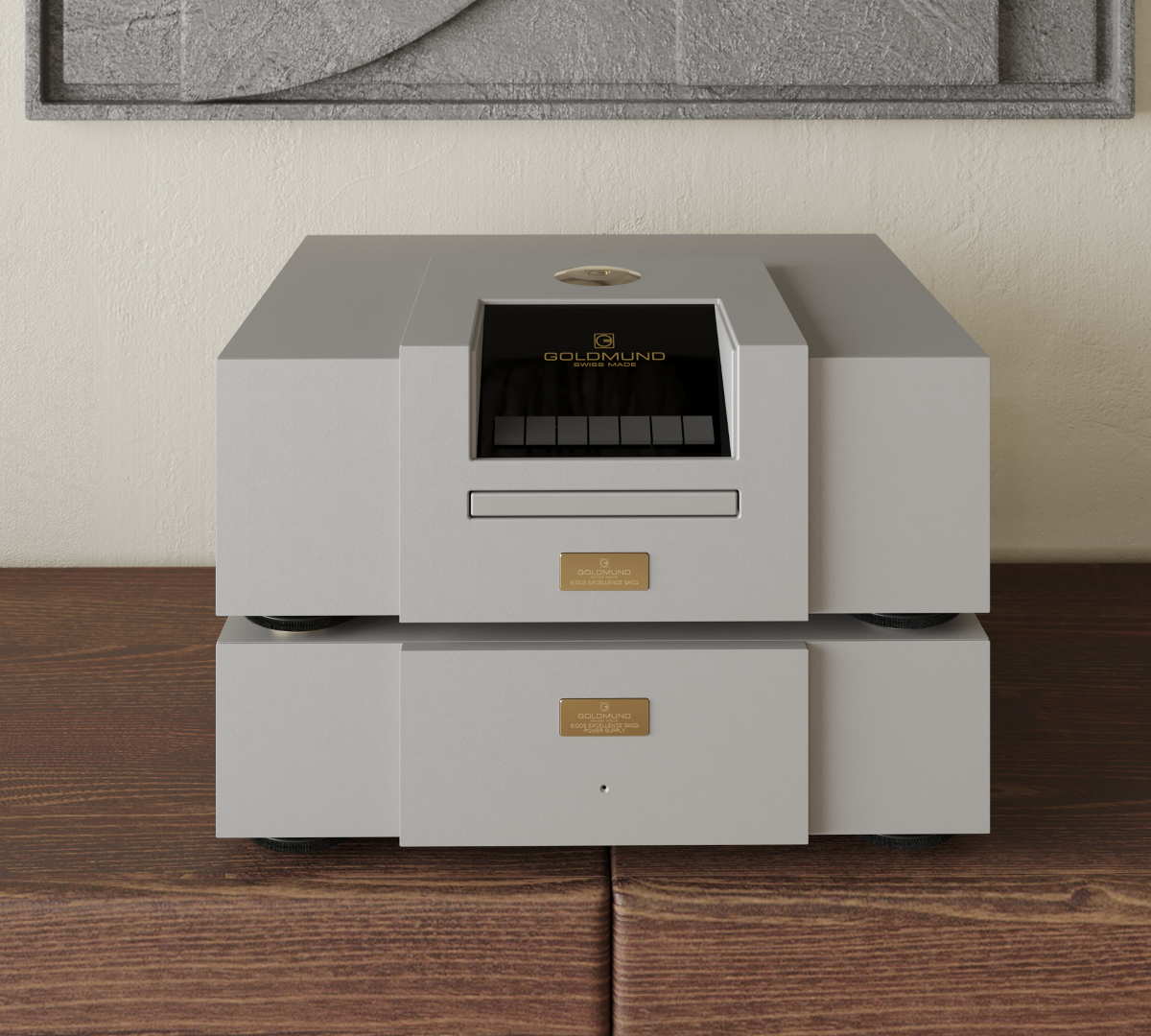 De Eidos Excellence SACD van het in Zwitserland gevestigde Goldmund herdefinieert volgens de ontwerpers wat een fysieke audiospeler kan bereiken. Hij belichaamt de essentie van balans, d.w.z. compromisloze prestaties in een iets kleiner formaat dan het vlaggenschip Eidos Reference, maar dan met behoud van de reputatie en de verfijning van het vlaggenschip. De Eidos Excellence heeft een externe voeding en staat darmee boven de enkel-chassis Eidos SACD.