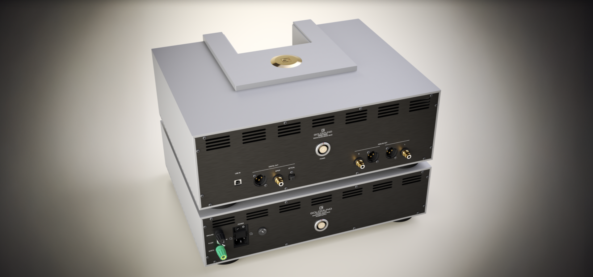 De Eidos Excellence SACD profiteert van een voedingsarchitectuur die voortkomt uit tientallen jaren onderzoek van Goldmund. Deze door Goldmund ontwikkelde voeding genereert elke spanning onafhankelijk voor het linker- en rechterkanaal, hetgeen zorgt voor een uitzonderlijk stil signaalpad.