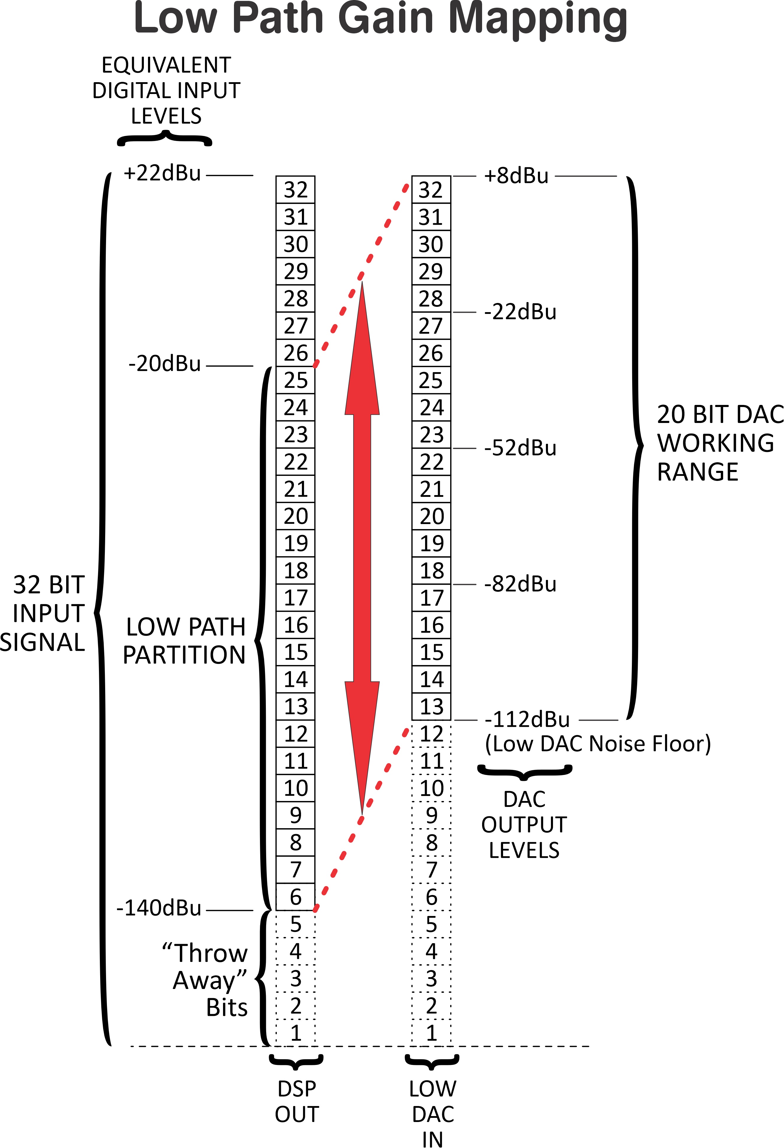Buitengewoon zuivere lage tonen audio is een belangrijke reden waarom HDR-A topologie een verbeterd ruimtelijk en timbreel realisme levert in vergelijking met oudere single-path DA-converters. Wanneer de audioniveaus onder een bepaalde drempelwaarde komen, begint HDR-A met de verwerking in een nieuwe DAC-kern met aanzienlijk lagere vervormings- en ruisprestaties (THD+N).