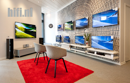 Naast hifiapparatuur en luidsprekers, is een deel van de zaak ingericht voor televisie. “We willen mensen een totaalpakket kunnen bieden”, verklaart Bos de aanwezigheid van zo’n vijftien televisieschermen. Maar ook hier geldt: slechts enkele, in dit geval twee, pijlers. “Panasonic is verreweg de beste op het gebied van plasma, terwijl je voor LCD simpelweg niet om Samsung heen kunt”, vertelt Bos in de luisterruimte die speciaal is ingericht voor home cinema.