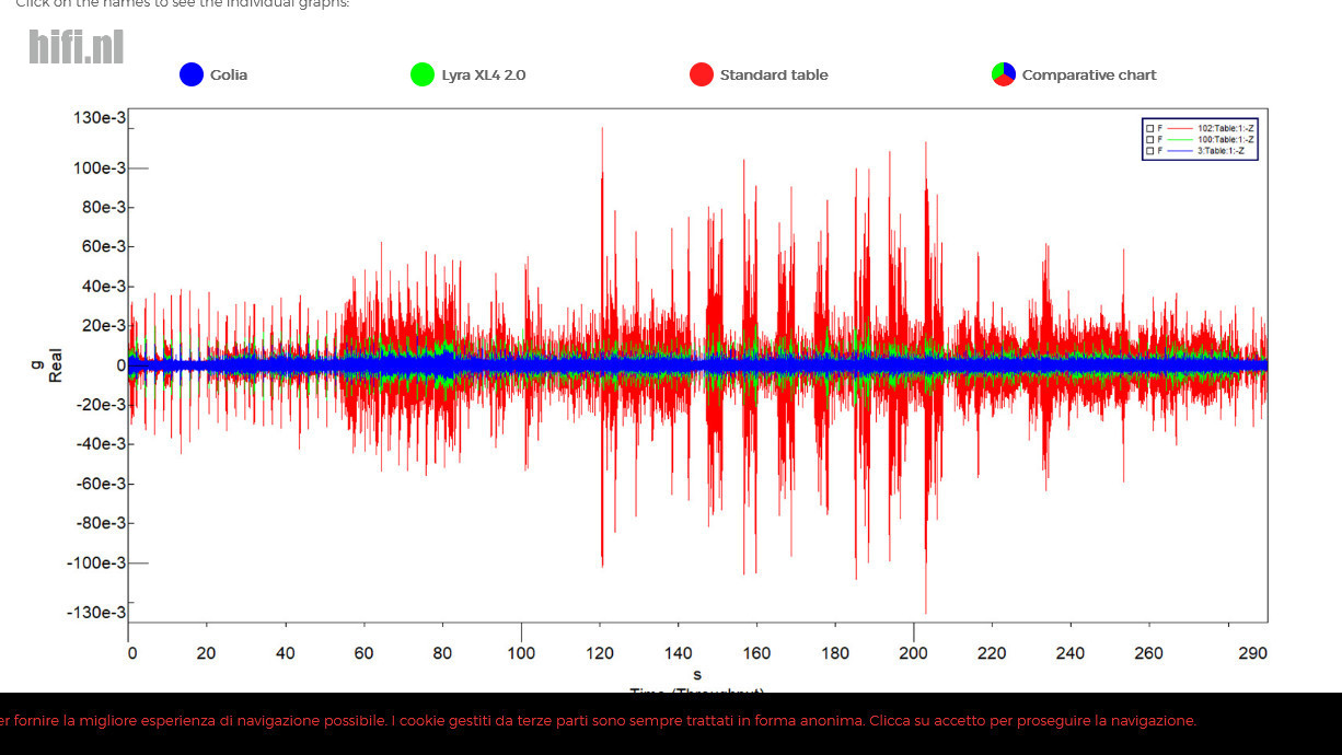 We hebben daarom onze racks naar een dealer in Noord Italië gebracht. Om te kunnen vergelijken in een normale luisterruimte en niet in een laboratorium. We gebruikten een systeem van zo’n 300.000 euro en volgden wetenschappelijk verantwoorde stappen. Dus, steeds dezelfde track afspelen (Pink Floyd, The Wall), gedurende 5 minuten met 60% en 80% van het volume. Het systeem stond op een gewoon rack. In de tweede sessie stond het systeem op onze racks uit de Classic Line en tijdens de derde sessie werd onze Ultimate Line ingezet. Medewerkers van de universiteit hebben vervolgens metingen verricht.