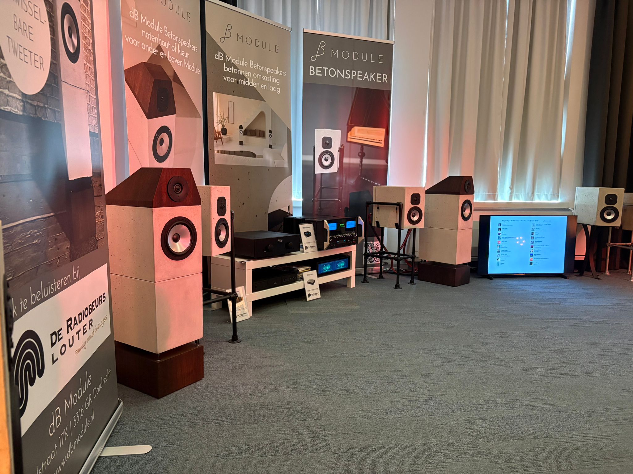 Beton en luidsprekers; dB Module omarmt het principe dat een klankkast geen klankkast mag zijn. Zo kwam Hans de Bakker erachter dat beton een goed, massief en nogal inert materiaal is waarin de door hem beoogde bas/middentoner optimaal tot z’n recht kan komen. Kleuringsvrij, wel te verstaan. Zijn innovatieve dB Module is weer aanwezig om de Model 1 te laten horen, maar debuteert op de show ook de Model 2 monitorspeaker.