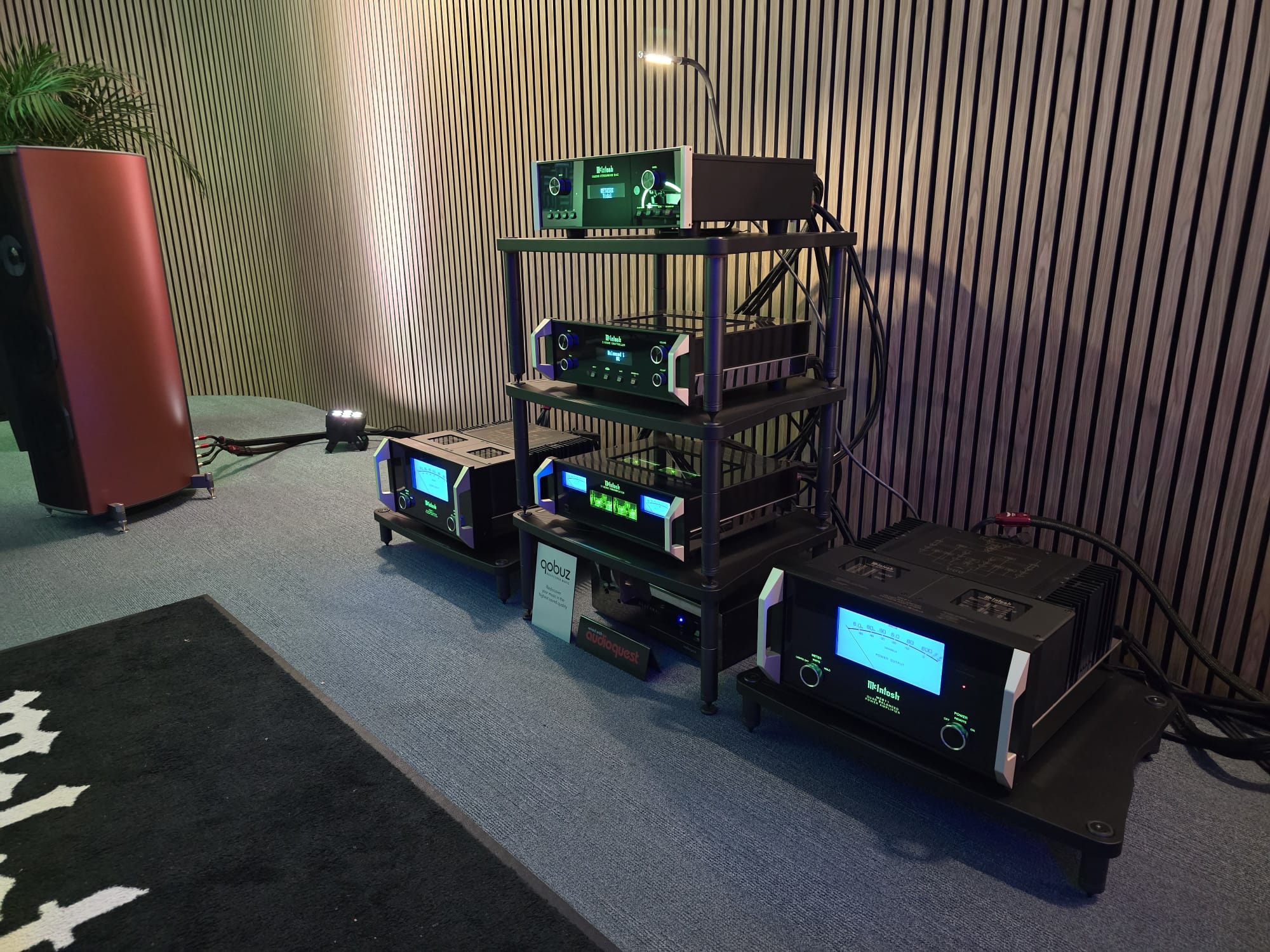 De luidsprekers worden aangestuurd door de McIntosh C12000 voorversterker, de next-gen voorversterker van de Amerikanen. De C12000 is voorzien van een innovatieve twee-chassis constructie waarbij de audiogedeelten volledig zijn gescheiden van de controle- en voedingsecties voor maximale zuiverheid. Het signaal gaat vervolgens naar een paar McIntosh MC611 monoblokken, elk goed voor 600 watt, ongeacht de luidsprekerimpedantie. Analoge bronnen worden verzorgd door de McIntosh MT10 draaitafel met vooringestelde toonarm en hoogwaardige moving-coil cartridge, terwijl de McIntosh DS200 Streaming DAC de digitale kant voor zijn rekening neemt met naadloze streaming en high-end conversie.