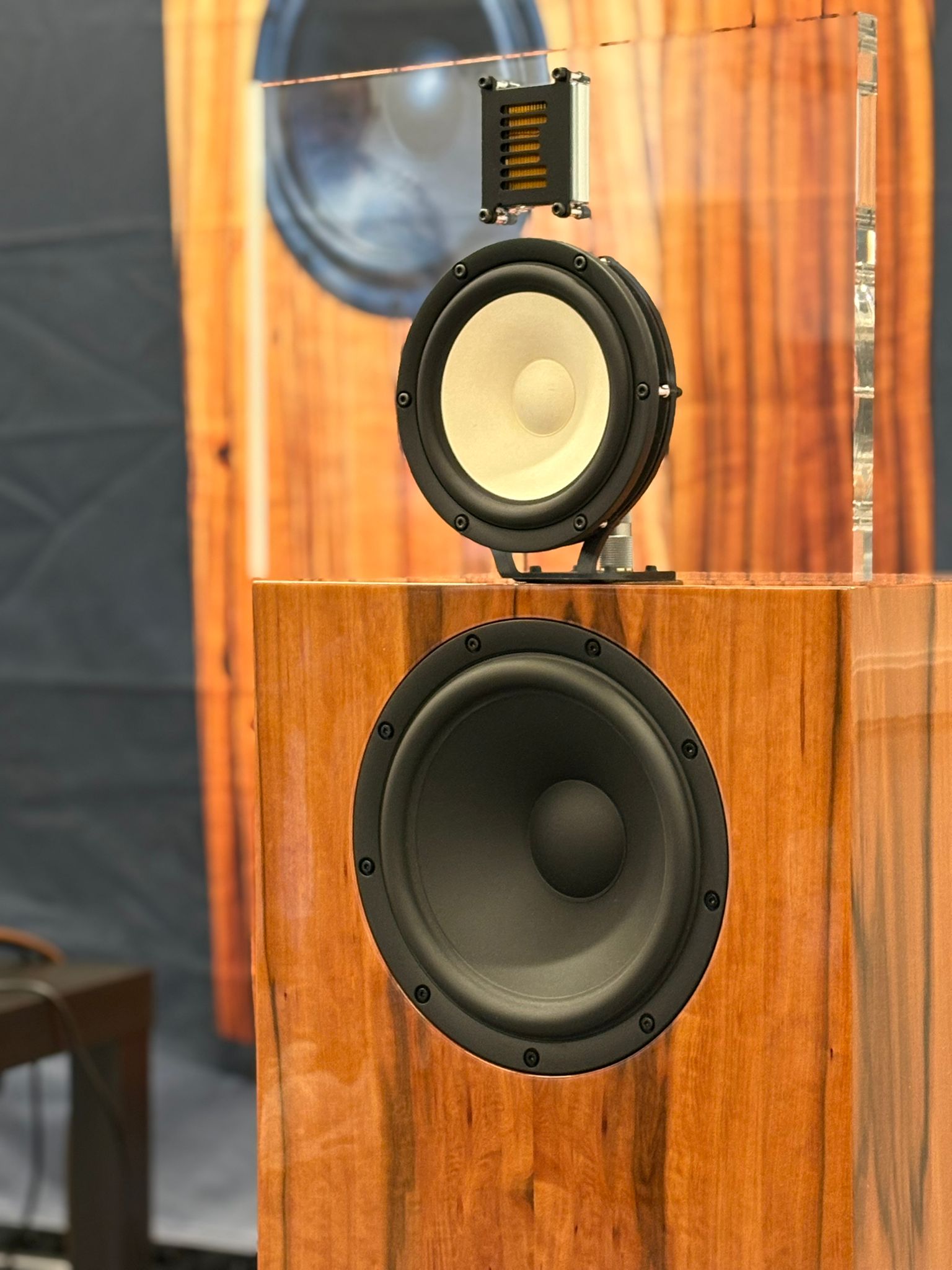 De behuizing is met de hand gebouwd uit 25 mm dik hout met een front van 40 mm berkenmultiplex, afgewerkt met echt fineer in diverse houtsoorten. De externe crossover, ook in fineer, is voorzien van topcomponenten en handbedrading. Het resultaat: puntbronkarakter, precisie, levensechte timing en een meeslepende luisterervaring die zelfs de meest veeleisende audiofiel weet te bekoren.