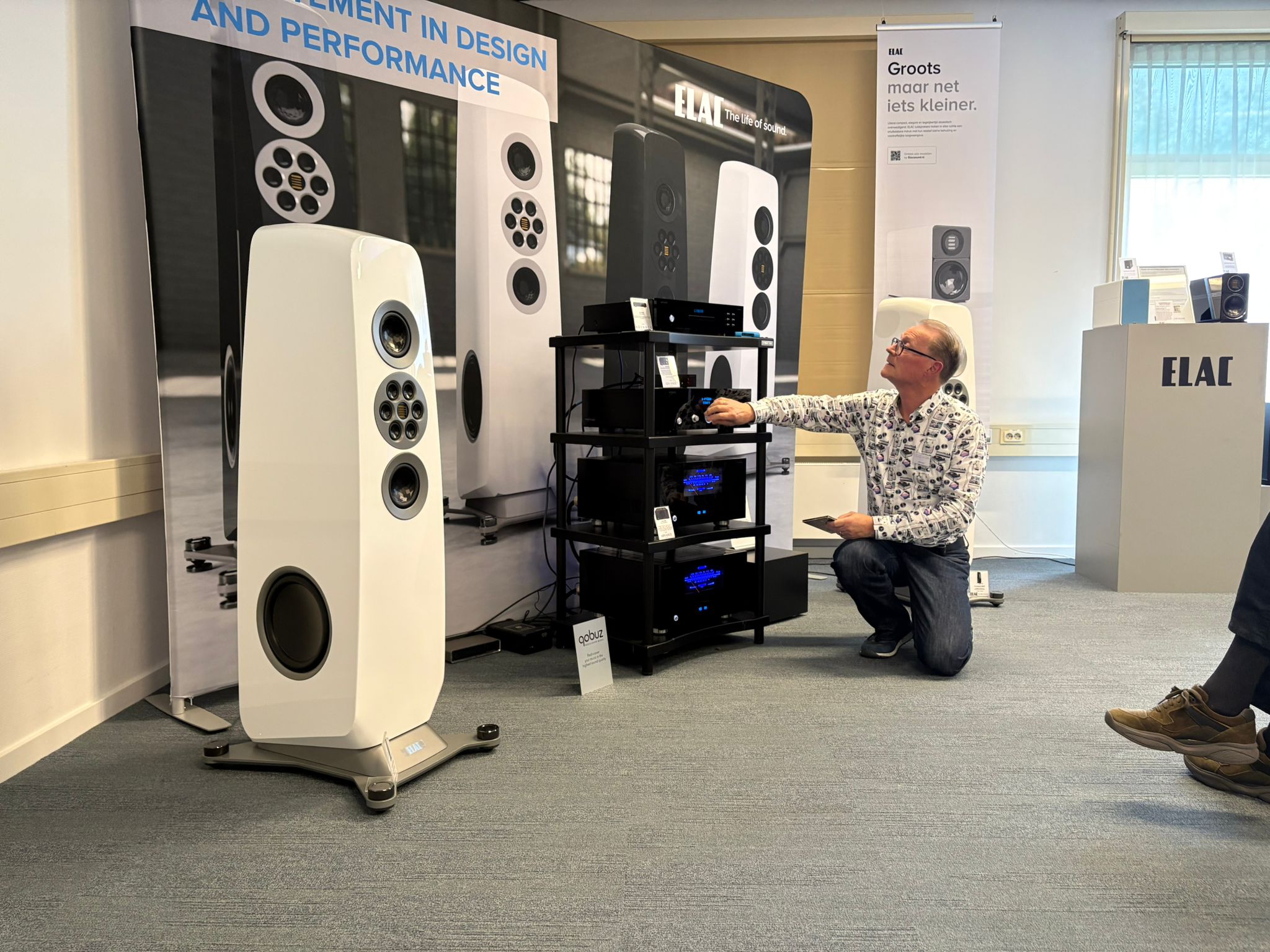 Servi-Q heeft eveneens een hele mooie primeur in de aanbieding, uit Duitsland in dit geval. De machtige ELAC Concentro M 807. ELAC heeft deze M 807 pas net op High End München voor het eerst onthuld, in Veldhoven staat de Benelux-primeur op de agenda.