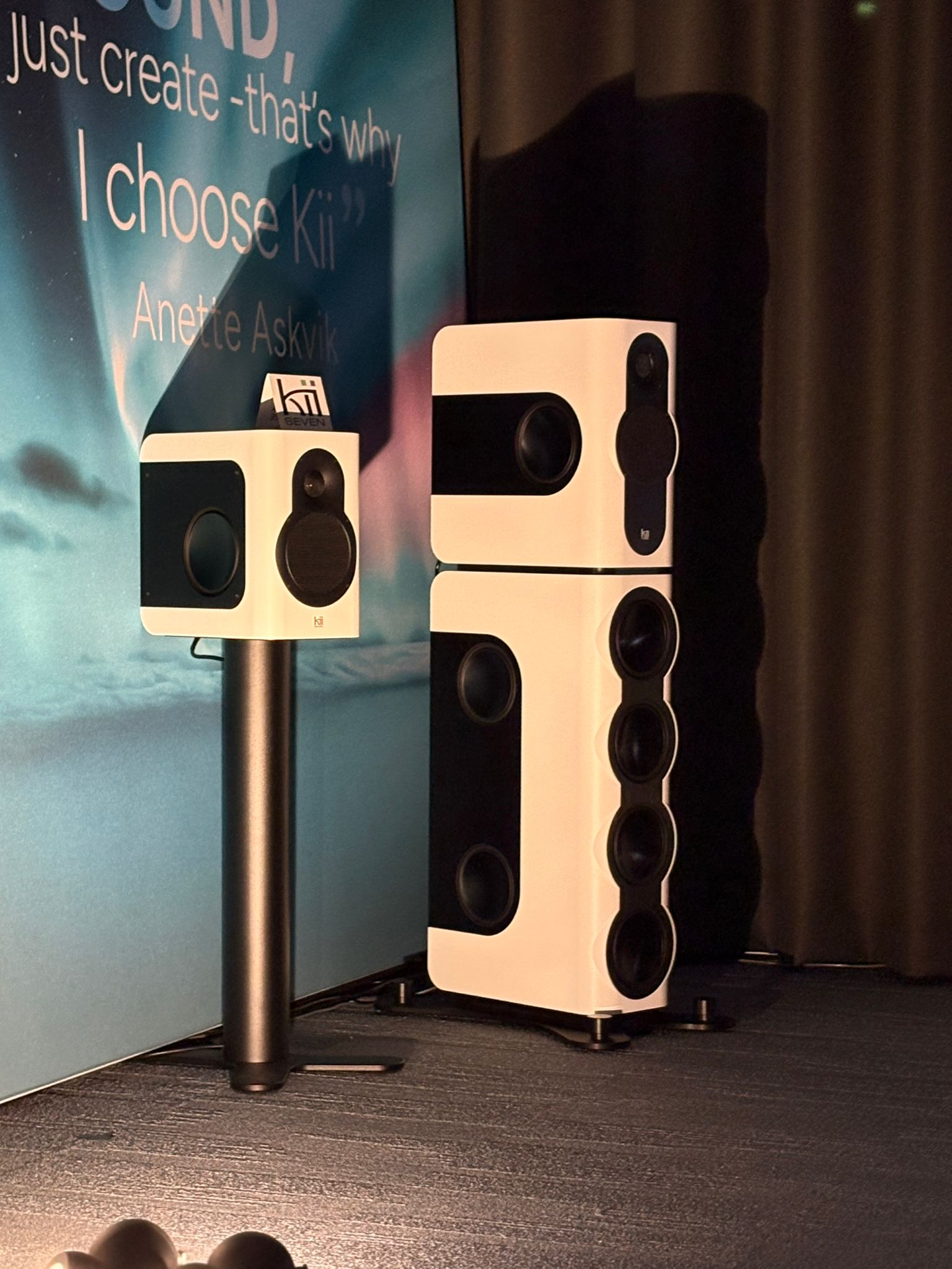 Nog meer imposante speakers: de Kii Audio Seven, hier afgebeeld met de Kii Three met BXT.
