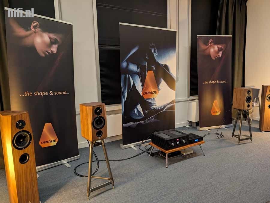 In de luisterruimte van Driade stonden meerdere luidsprekers opgesteld, met in het midden een fraaie set met onder meer apparatuur van Soulnote. De aandacht ging er naar de nieuwe Model 9 van het eigen merk Driade. Deze compacte monitorluidspreker, ontwikkeld na intensieve simulaties en prototypes, is eenvoudig aan te sturen en moet daarbij zorgen voor krachtige prestaties met een diepe, nauwkeurige bas. "Dankzij het prachtige middengebied, de natuurlijke weergave van stemmen en een gedetailleerde, ruimtelijke soundstage biedt de Model 9 een uitzonderlijke luisterervaring", maar neem het vooral niet van de fabrikant alleen aan – de Model 9 is al uitgebreid getest op HIFI.NL.