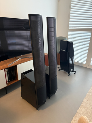 Van eerste eigenaar aangeboden een gloednieuwe set Martin Logan ESL X luidsprekers in de luxe kleur High Gloss Black.