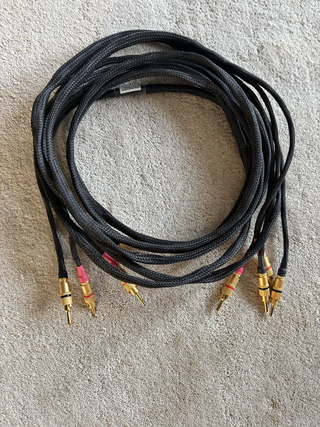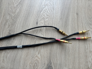 Te koop een set hoogwaardige Magic-Link luidsprekerkabels, gemaakt door de gerenommeerde kabelbouwer John van Gent, een bekende naam in de audiowereld.