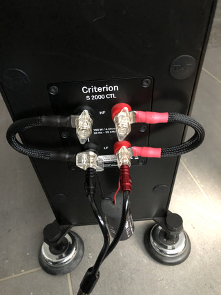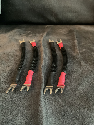 Prachtige set Audio luidspreker jumpers afgewerkt met zilveren spades.